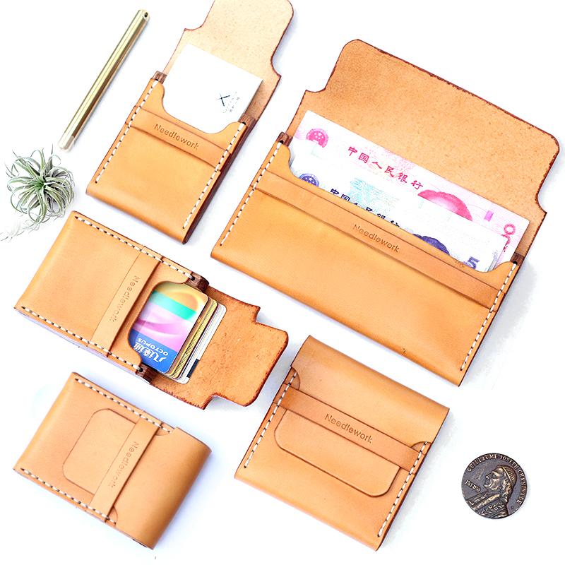 Handmade Cool Wooden Brown Leather Mens Wallet Small Card Holder Coin Wallet for Men