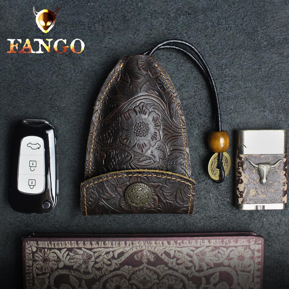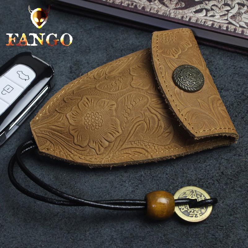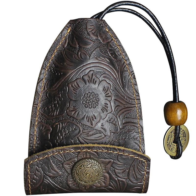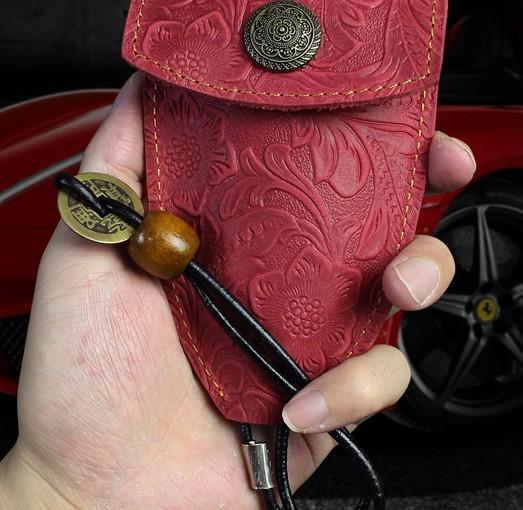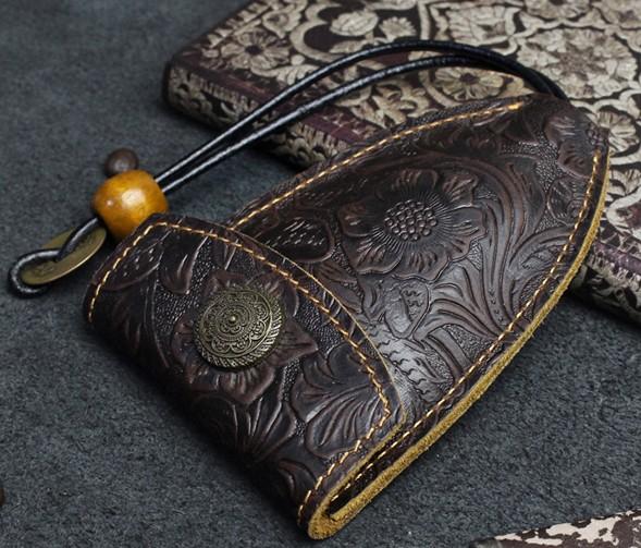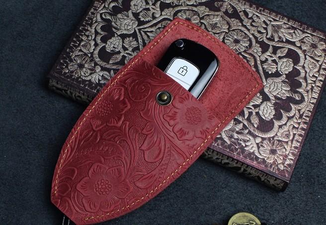 Design: Handmade Leather Floral Mens Cool Car Key Wallet Coin Wallet Pouch Car KeyChain for Men