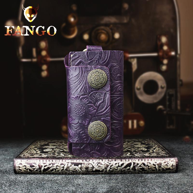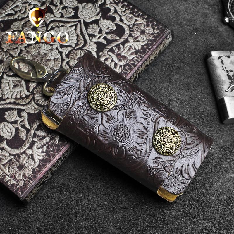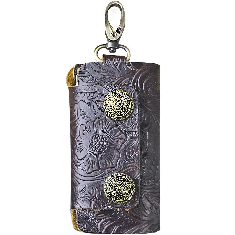 Design: Handmade Leather Floral Mens Cool Car Key Wallet Coin Wallet Pouch Car KeyChain for Men