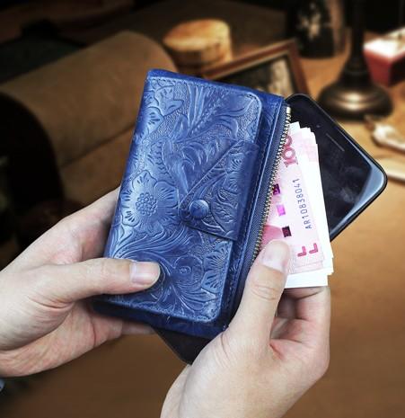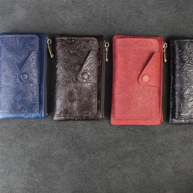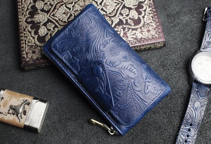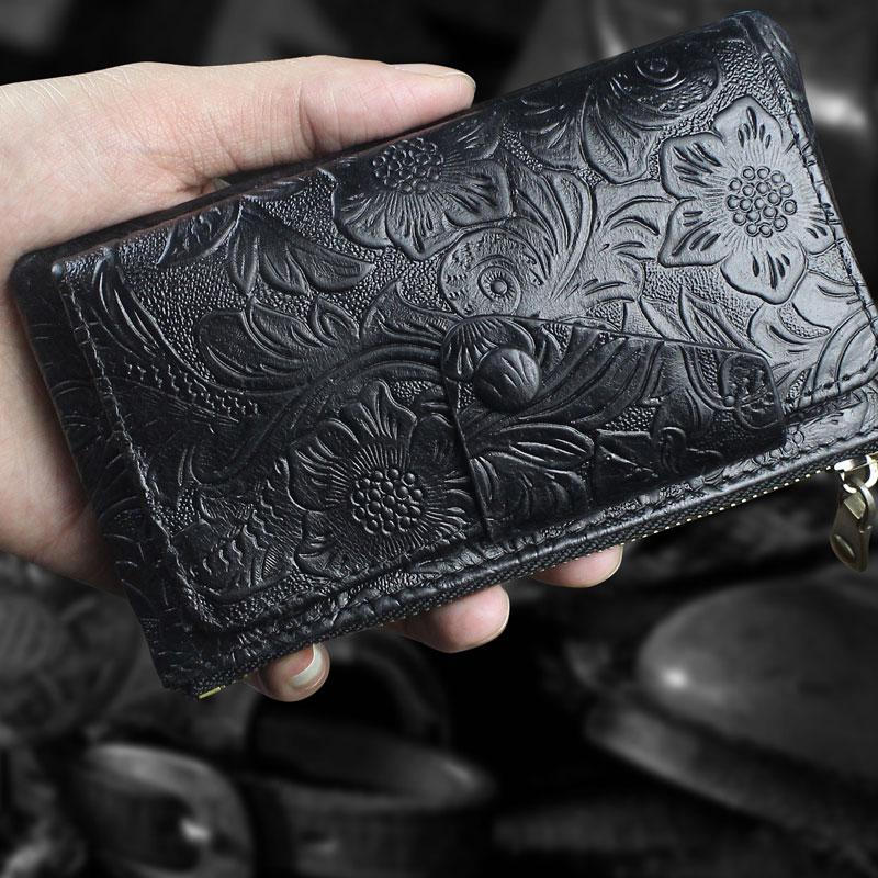 Handmade Leather Floral Mens Cool Key Wallet Wallet Card Holder Small Card Keychain Wallets for Men