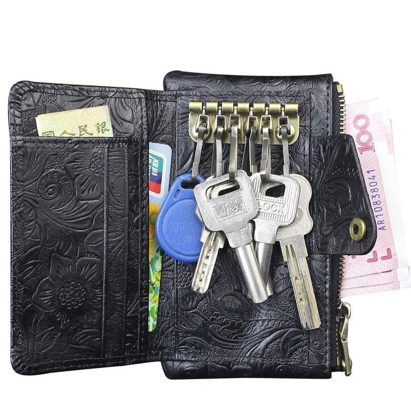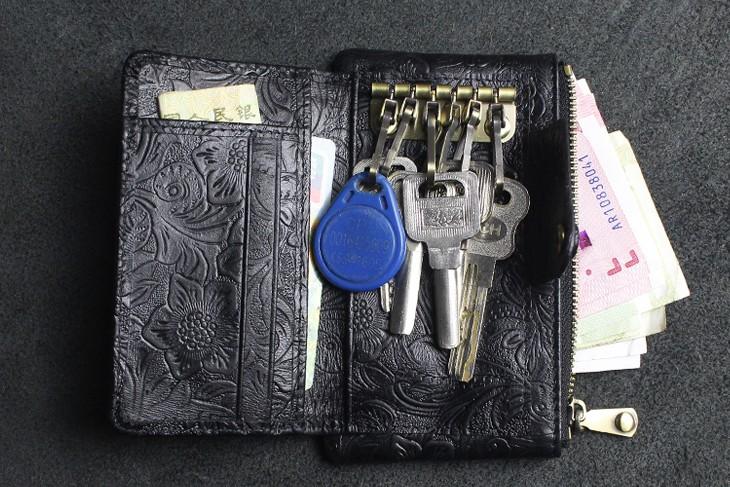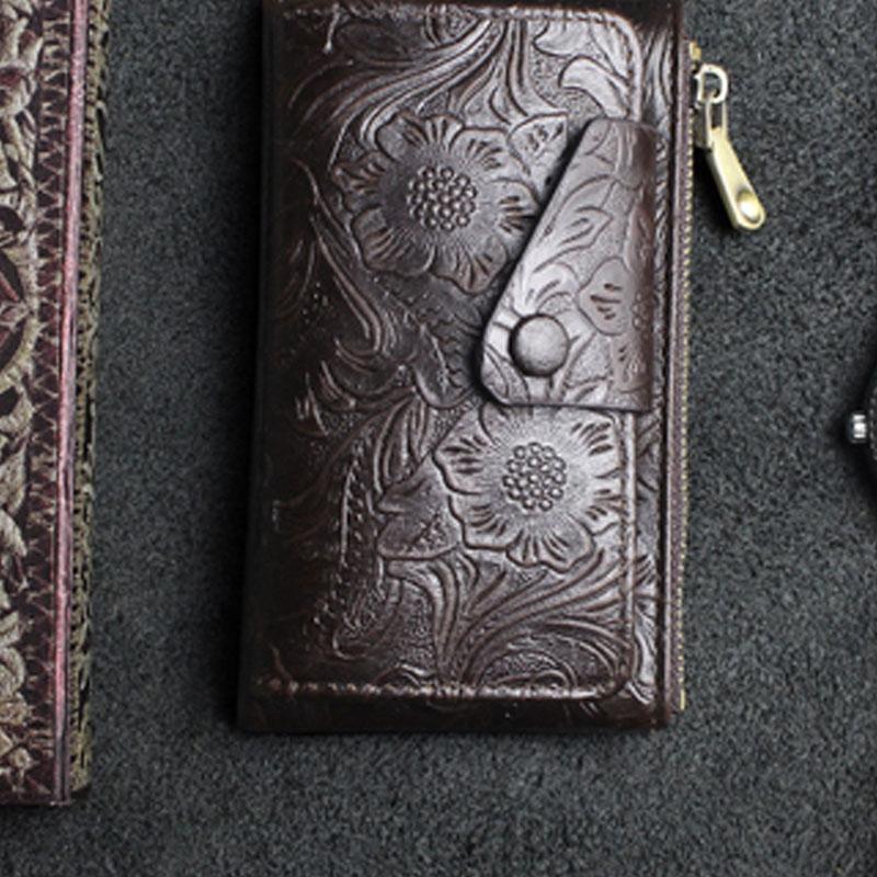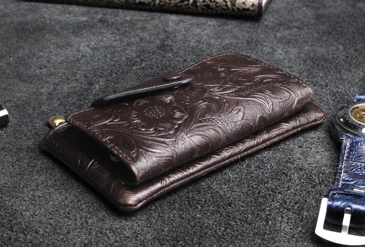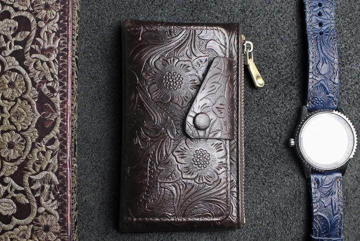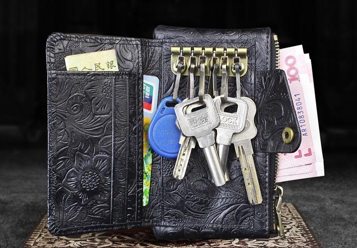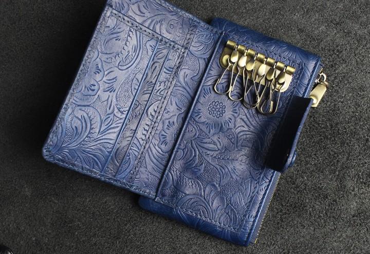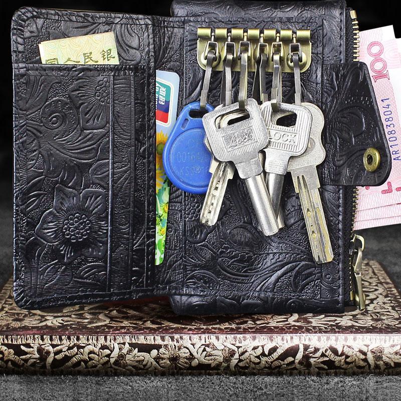 Design: Handmade Leather Floral Mens Cool Key Wallet Wallet Card Holder Small Card Keychain Wallets for Men