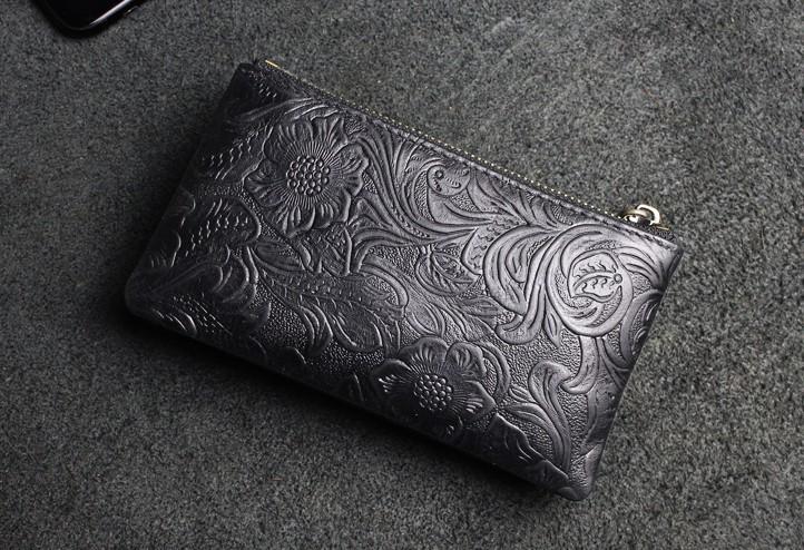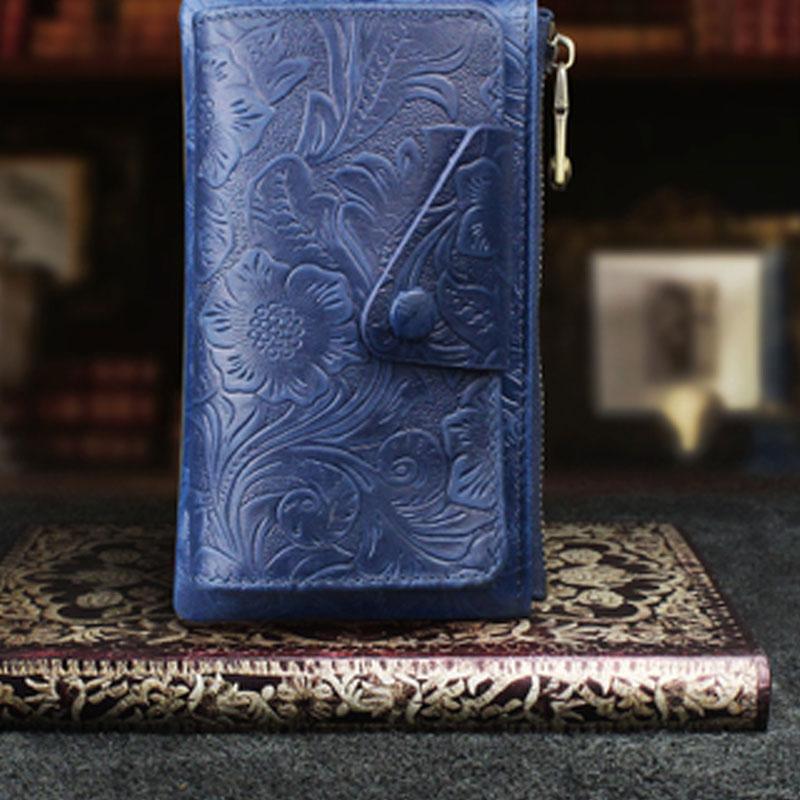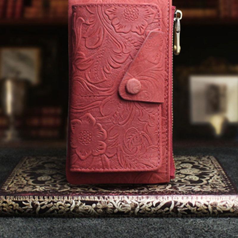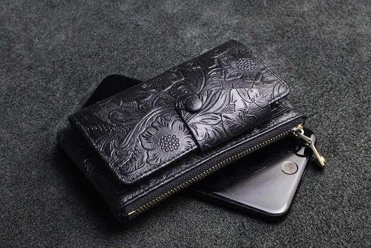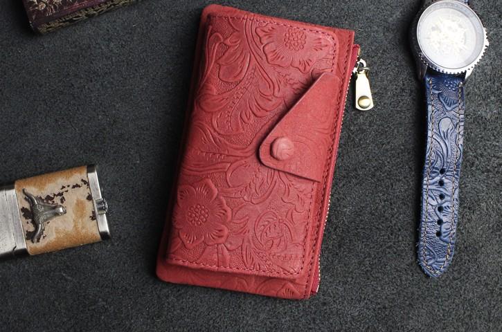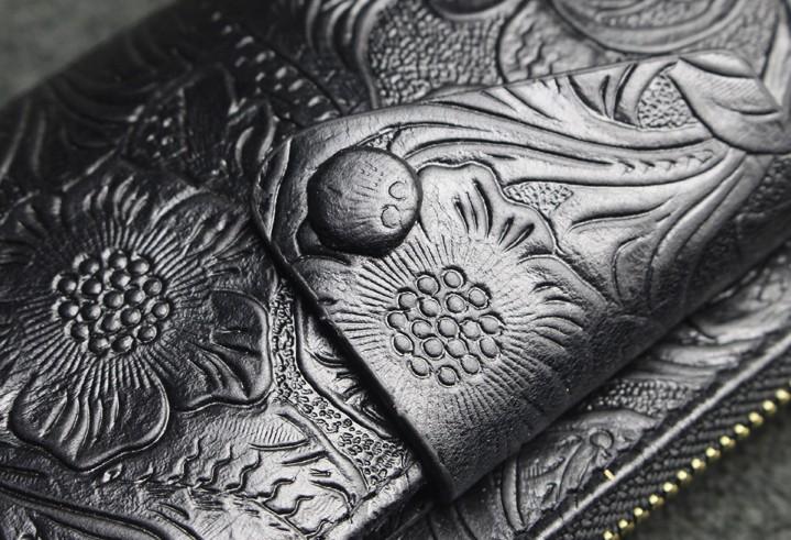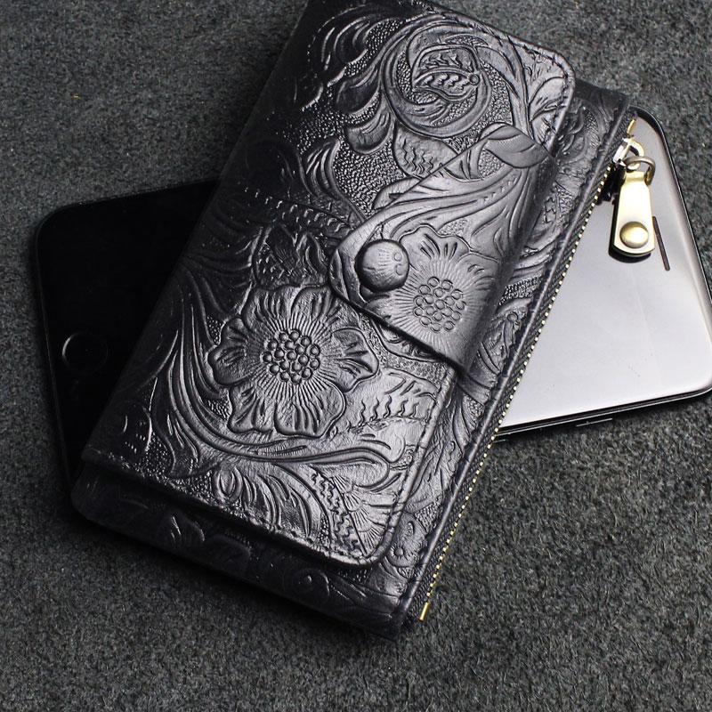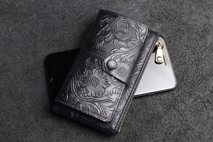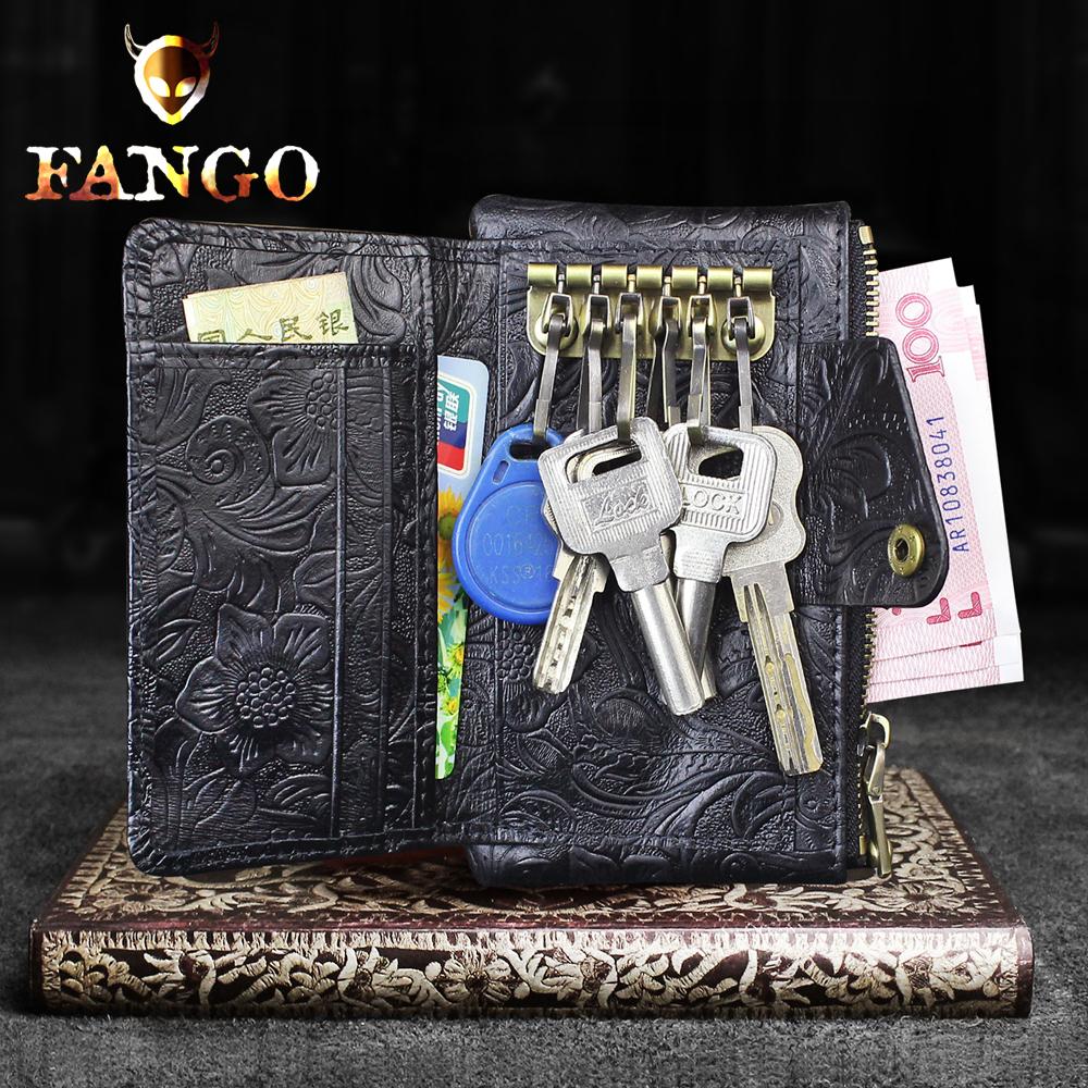 Design: Handmade Leather Floral Mens Cool Key Wallet Wallet Card Holder Small Card Keychain Wallets for Men