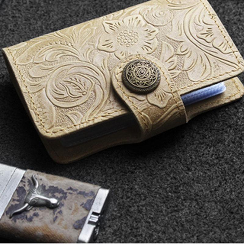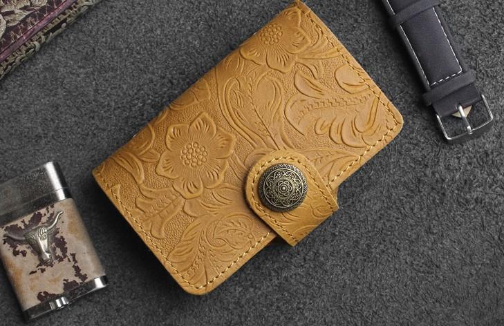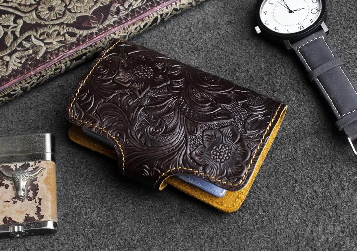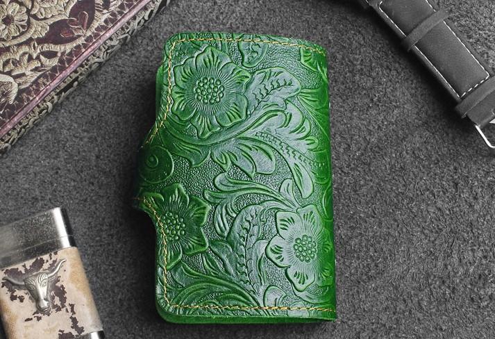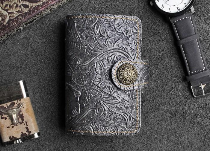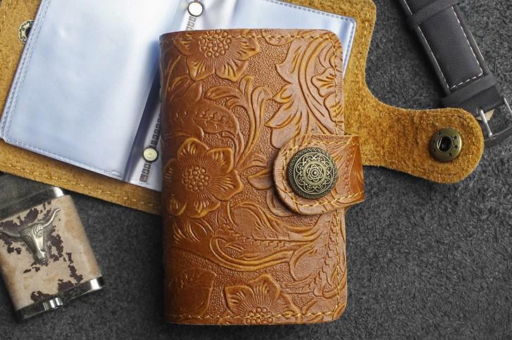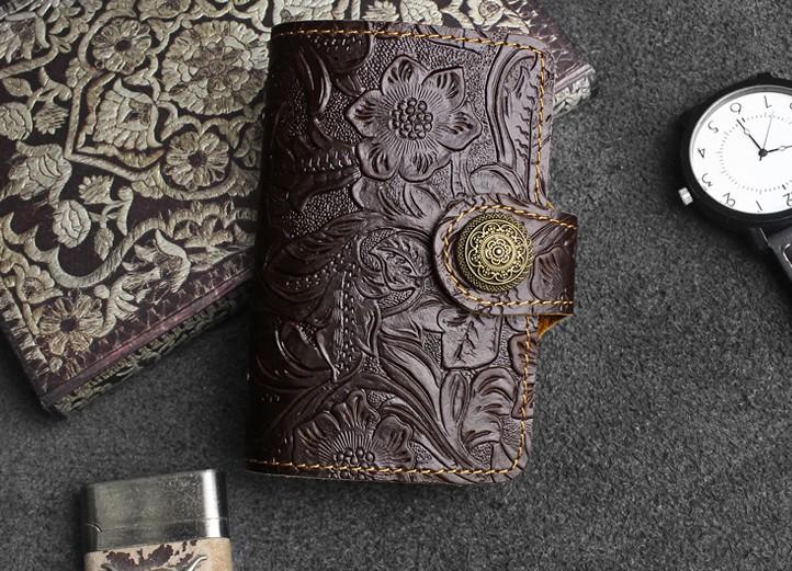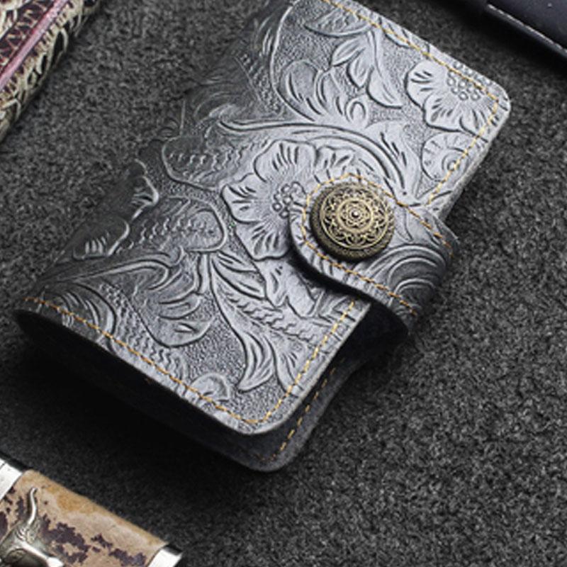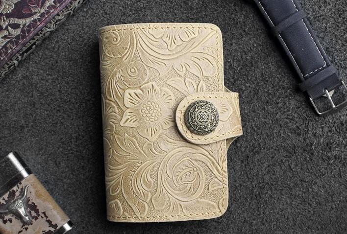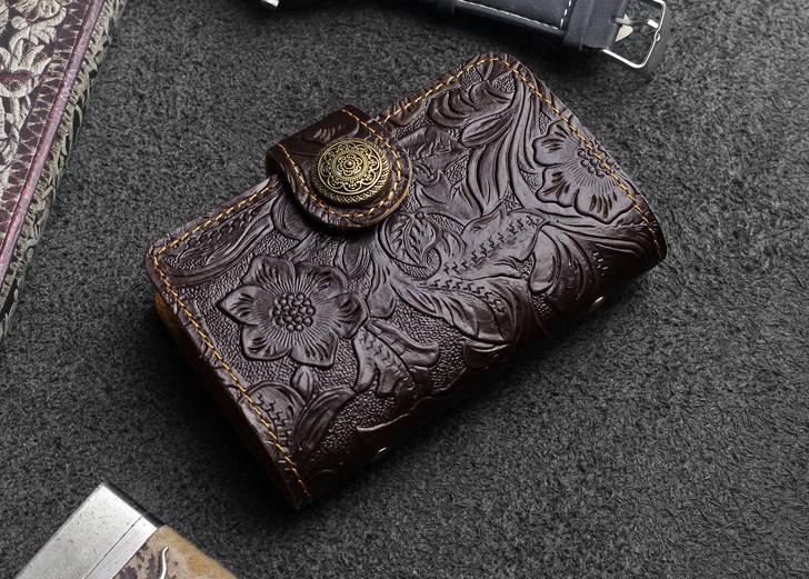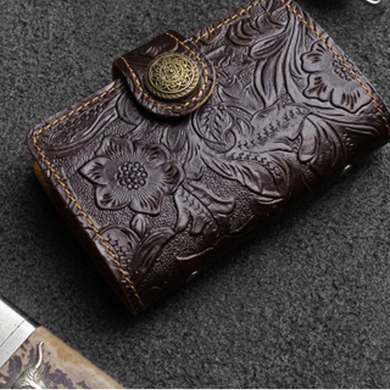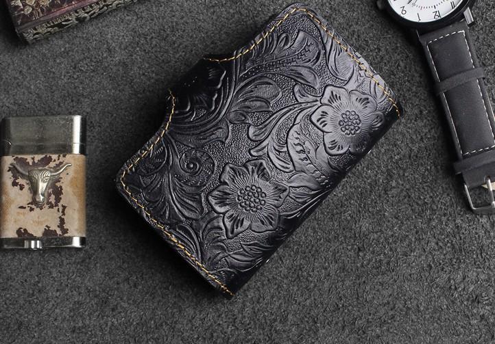 Design: Handmade Leather Floral Mens Cool Short Wallet Card Holder Small Card Slim Wallets for Men