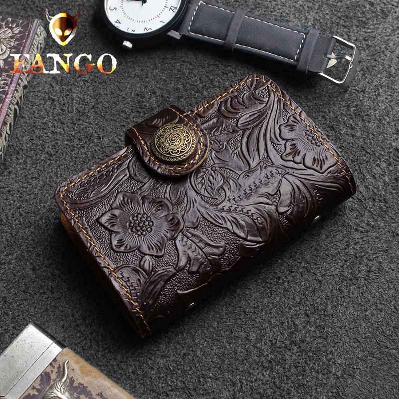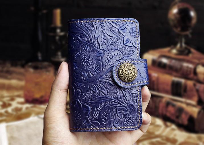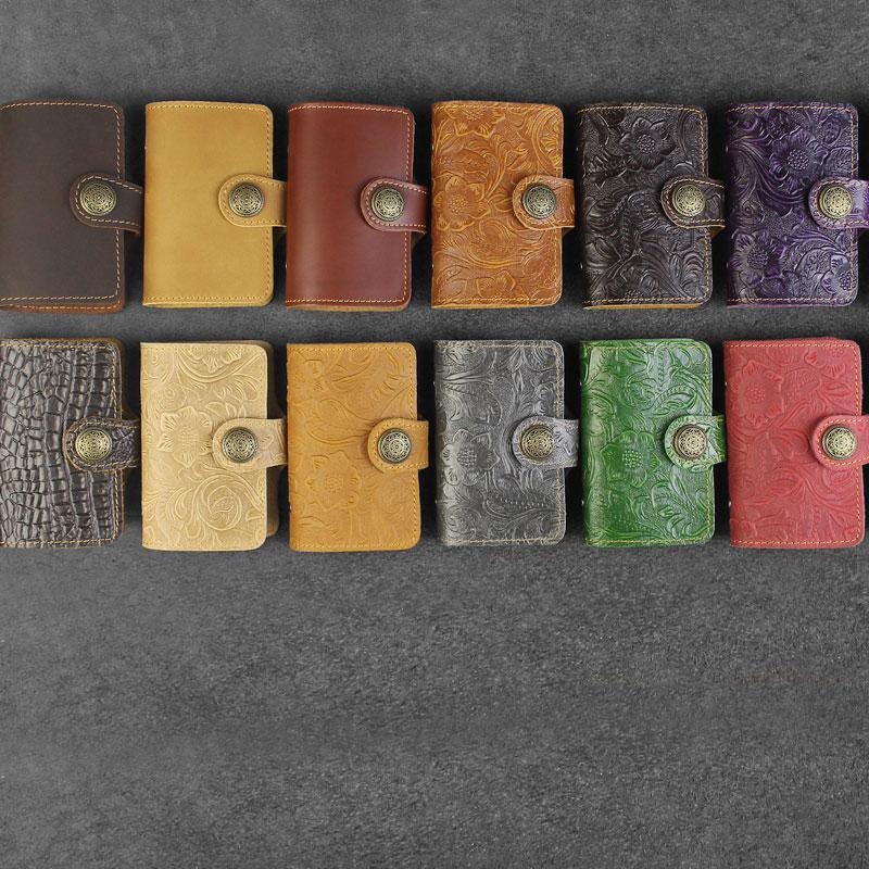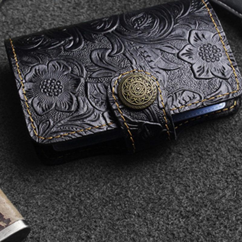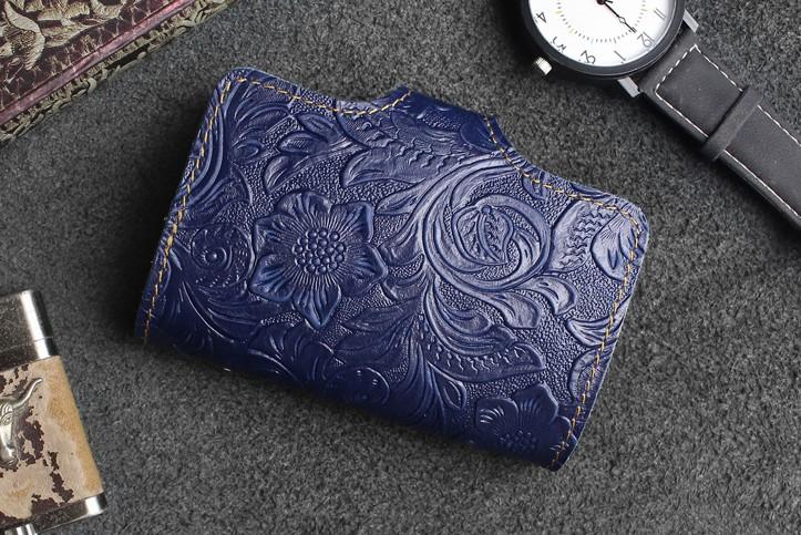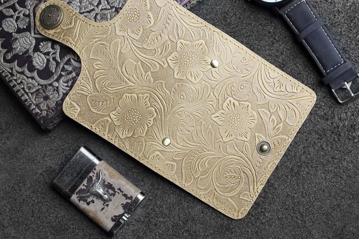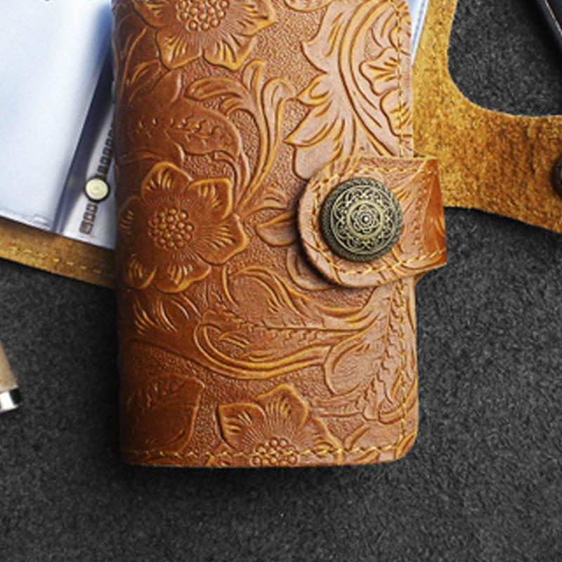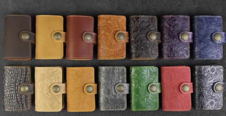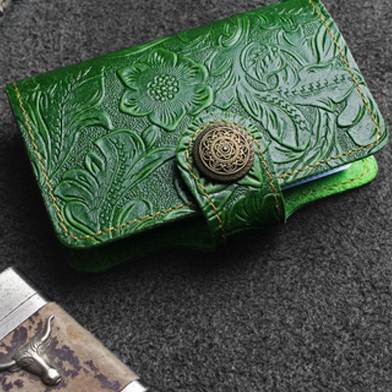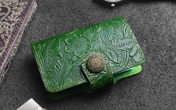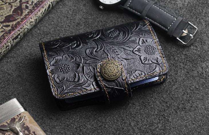 Design: Handmade Leather Floral Mens Cool Short Wallet Card Holder Small Card Slim Wallets for Men