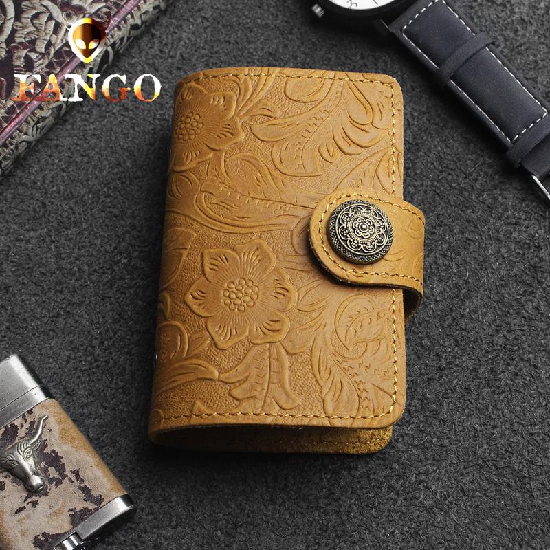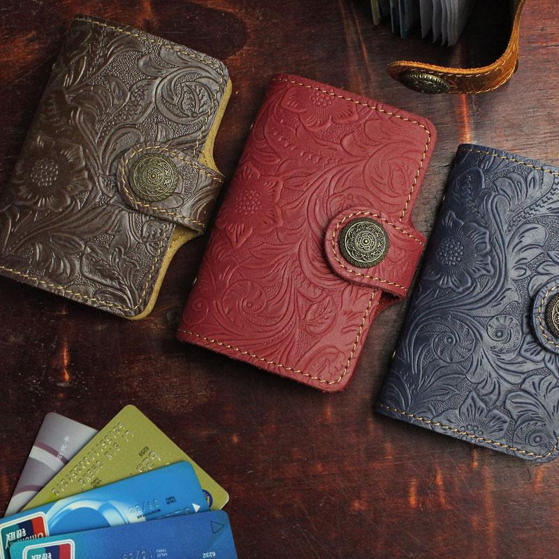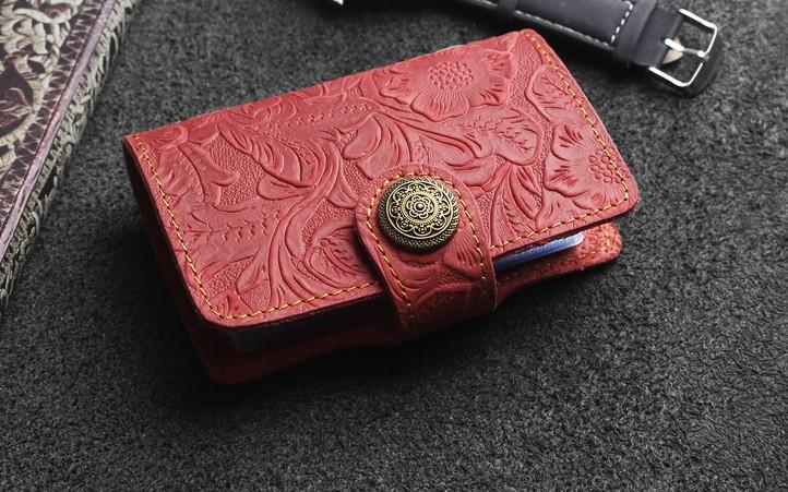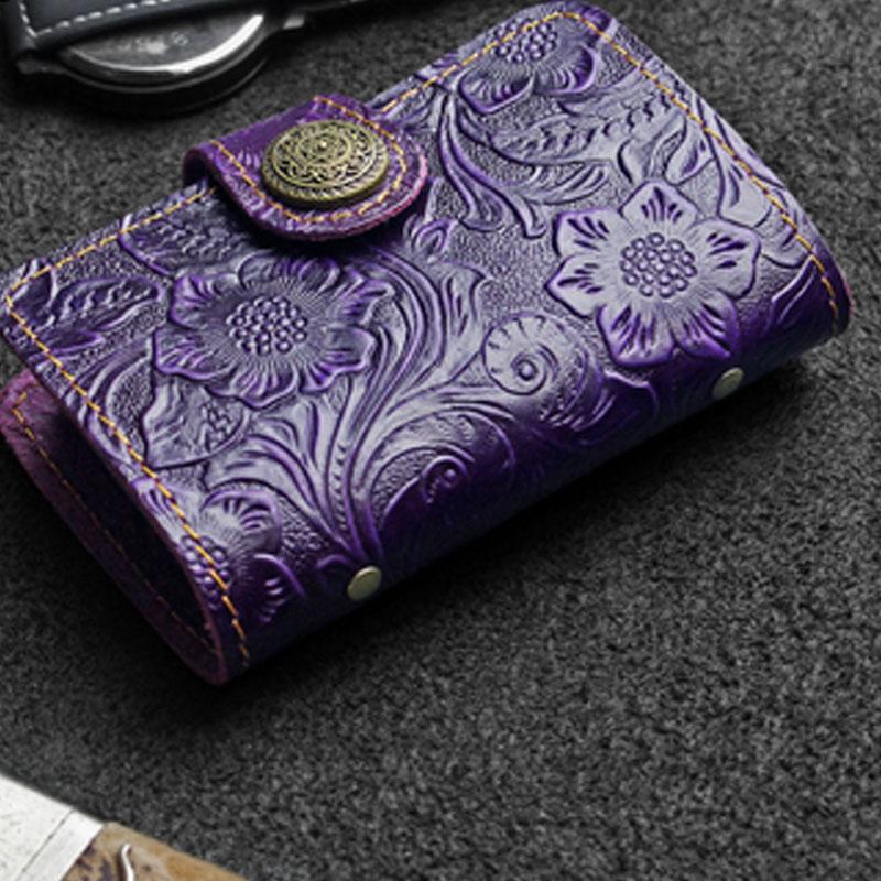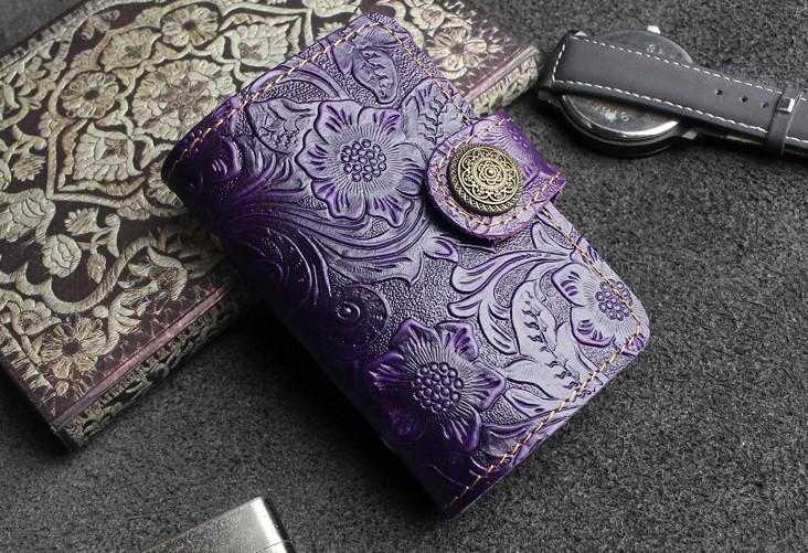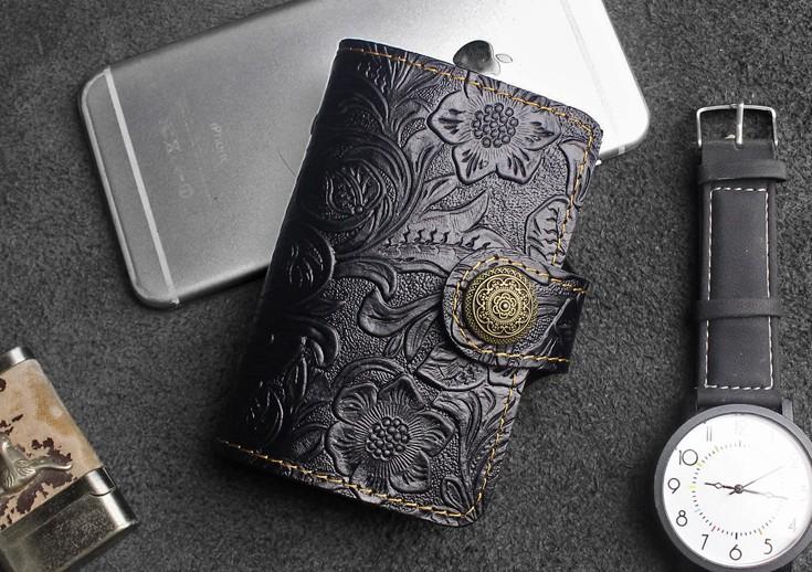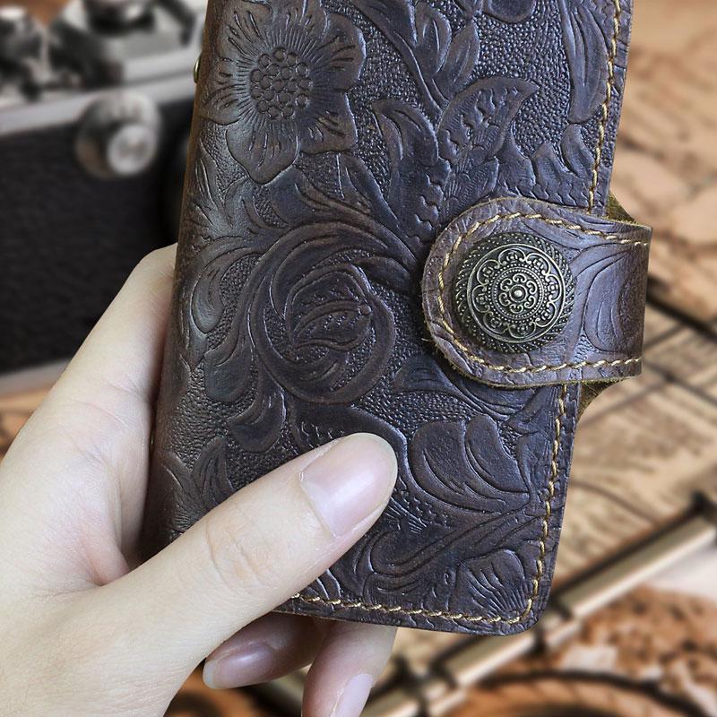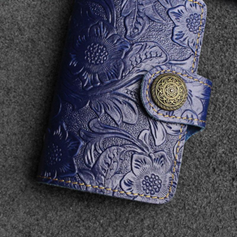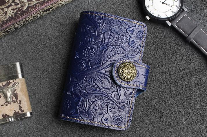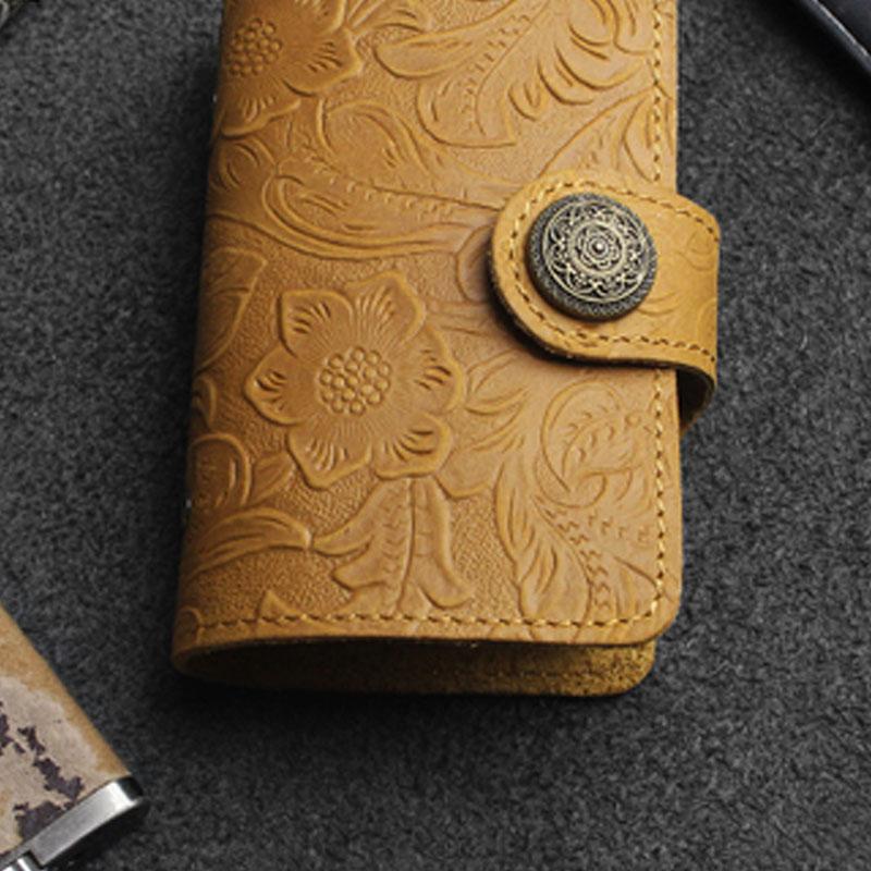 Design: Handmade Leather Floral Mens Cool Short Wallet Card Holder Small Card Slim Wallets for Men