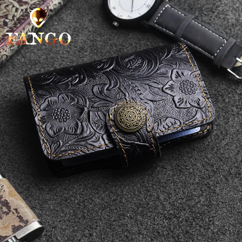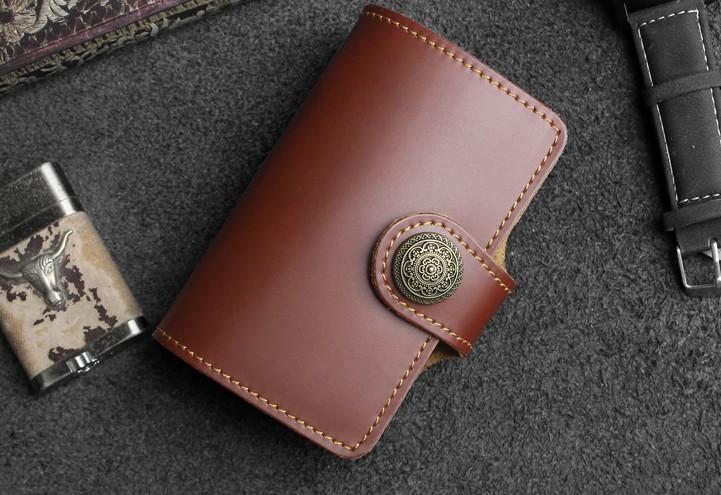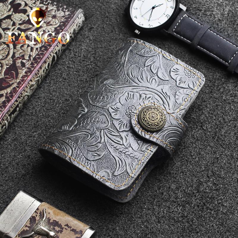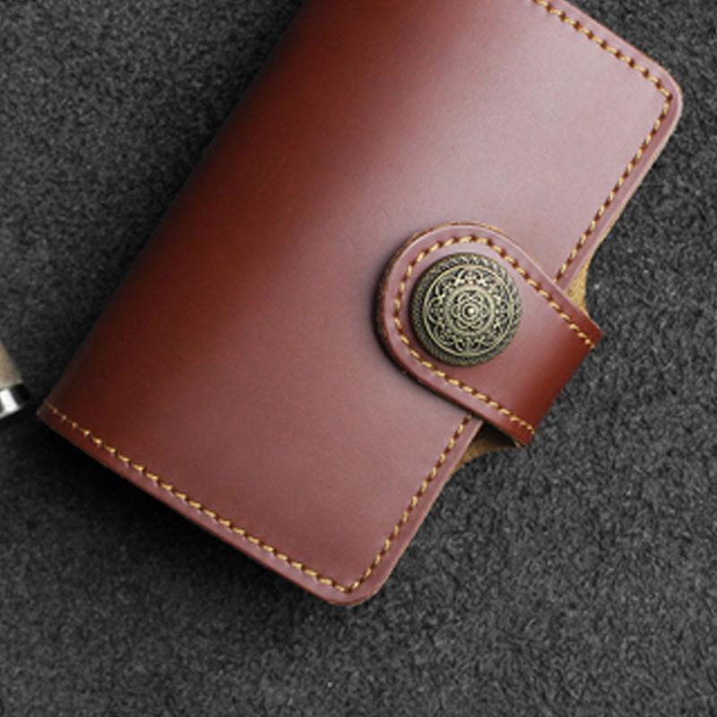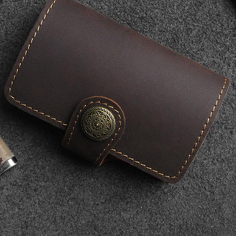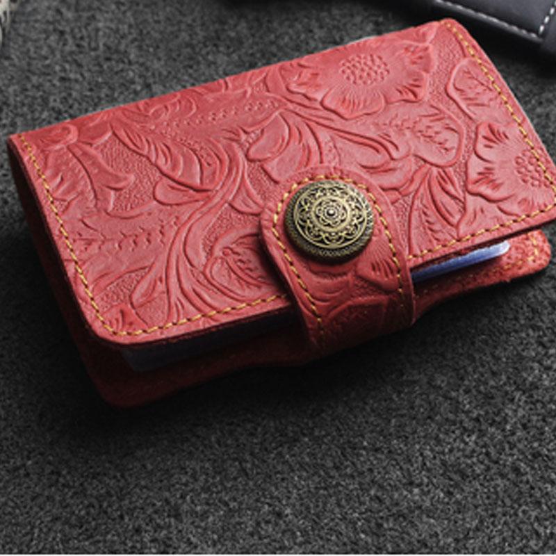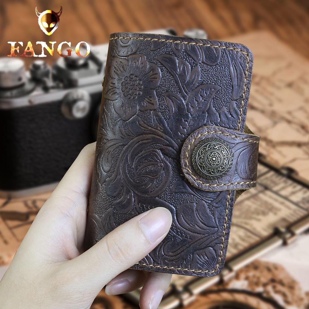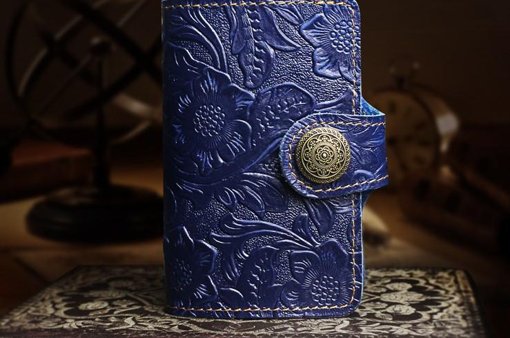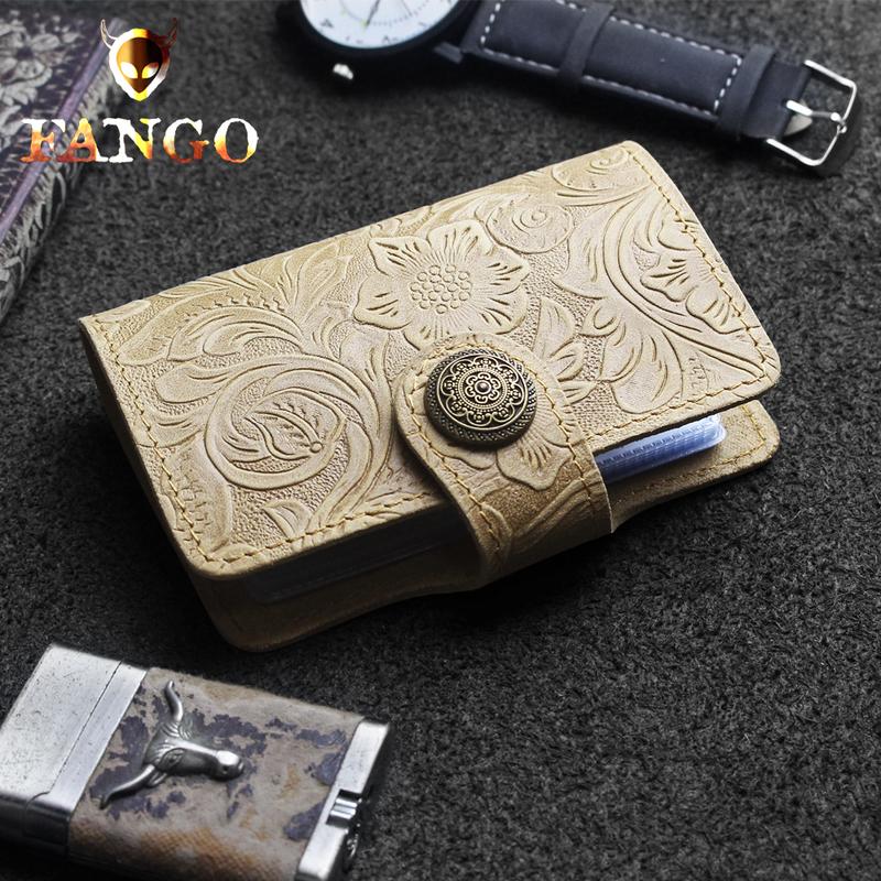 Design: Handmade Leather Floral Mens Cool Short Wallet Card Holder Small Card Slim Wallets for Men