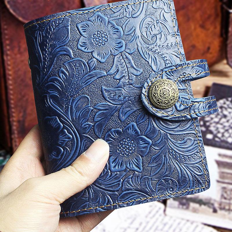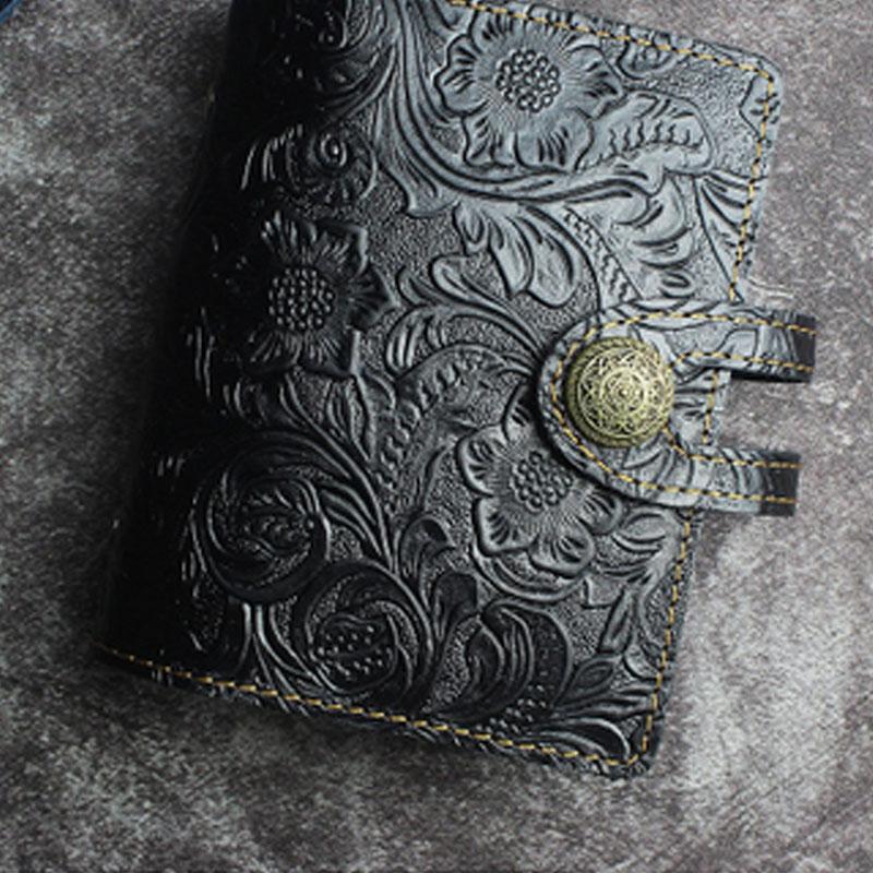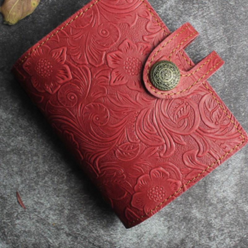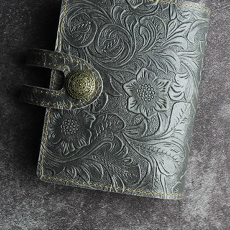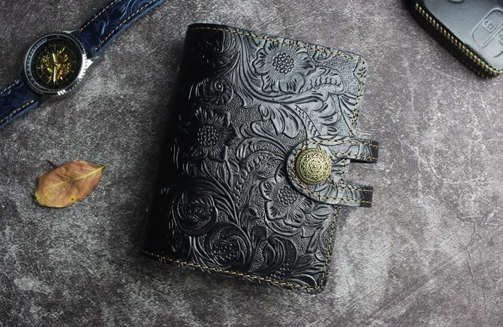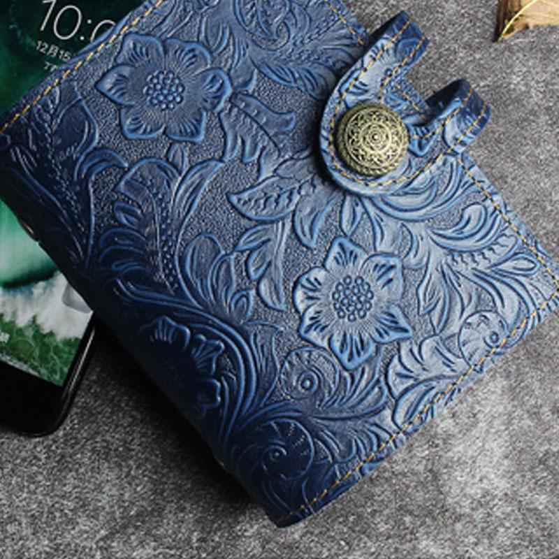 Handmade Leather Floral Mens Cool Short Wallet Card Holder Small Card Slim Wallets for Men