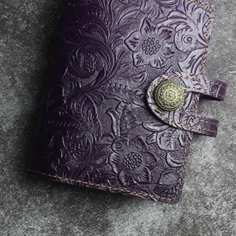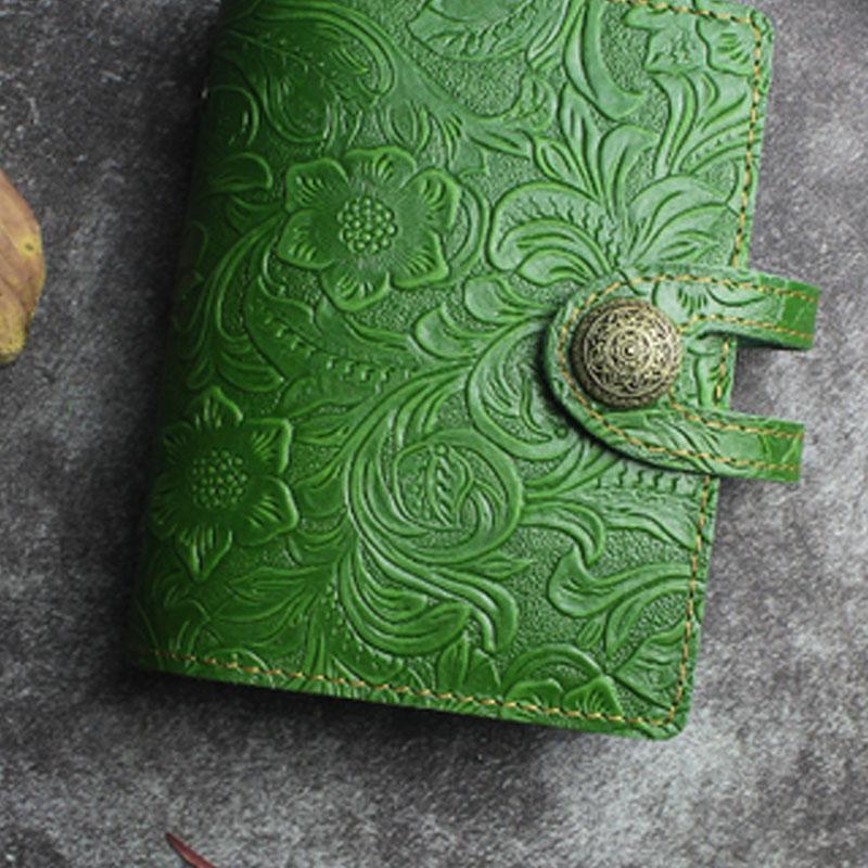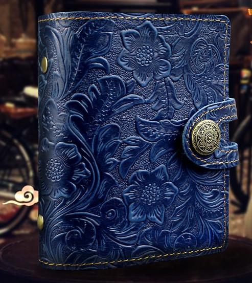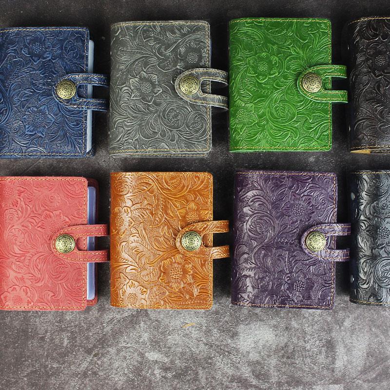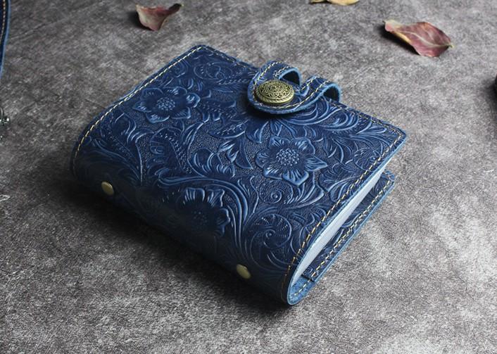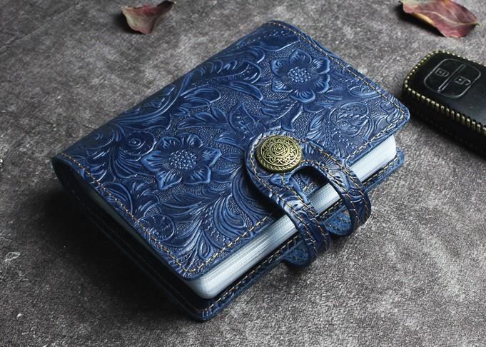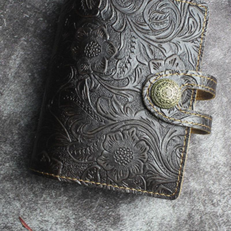 Handmade Leather Floral Mens Cool Short Wallet Card Holder Small Card Slim Wallets for Men