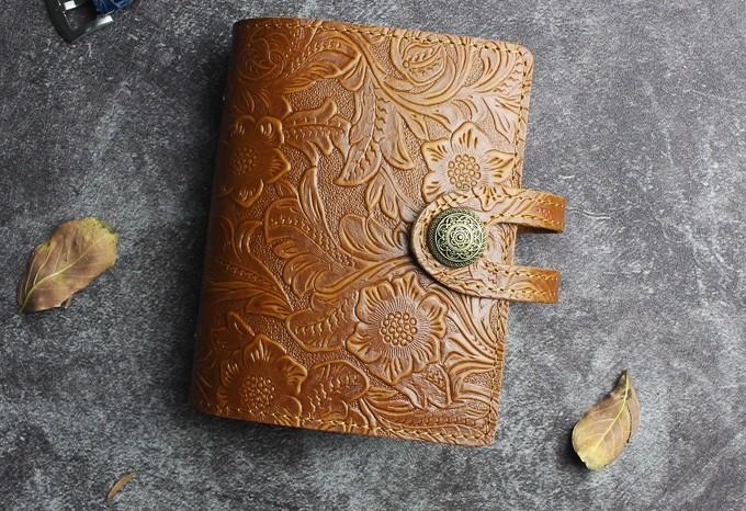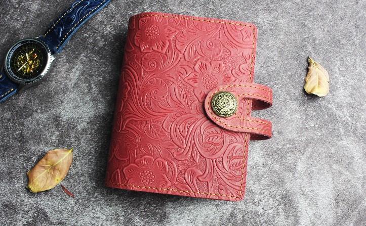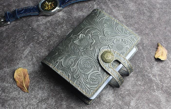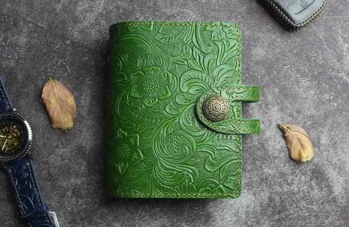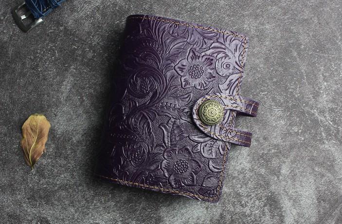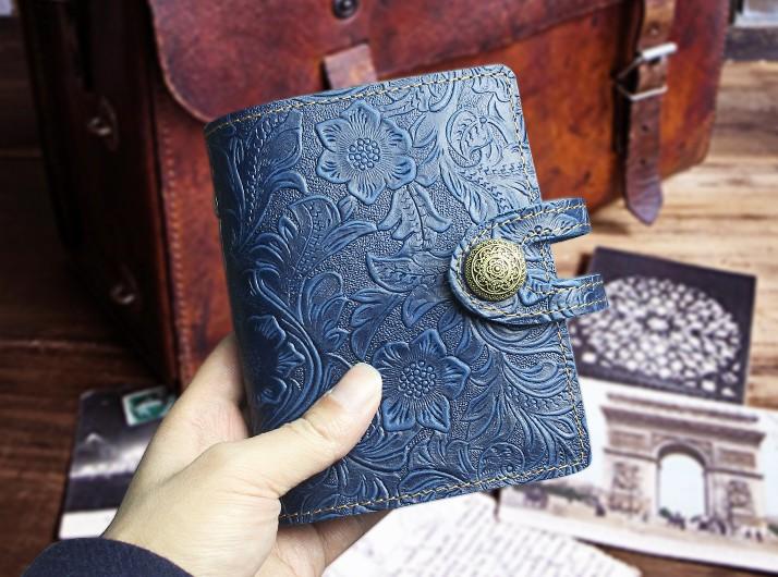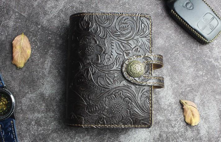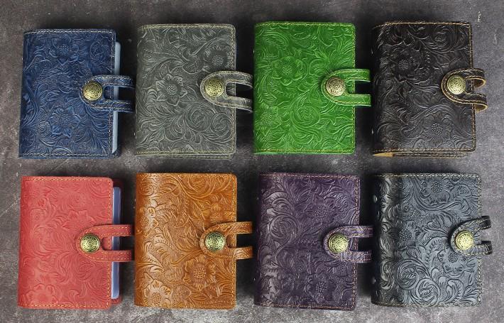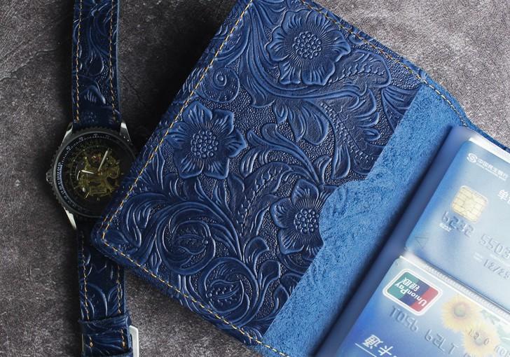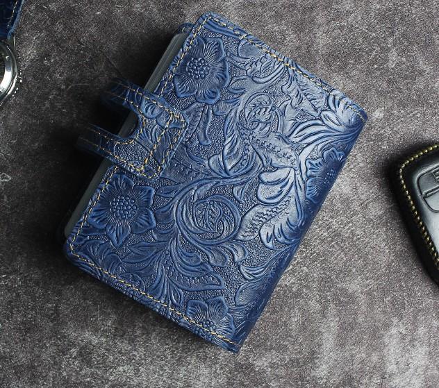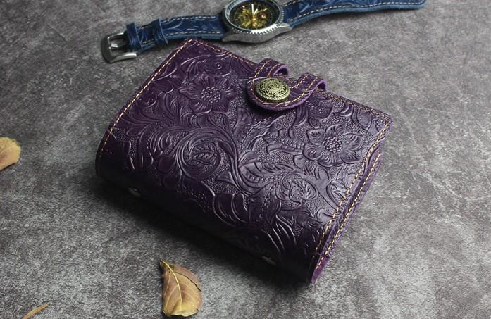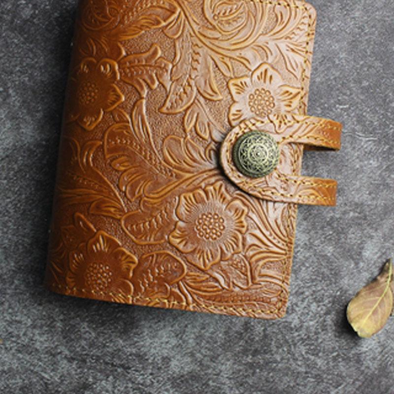 Design: Handmade Leather Floral Mens Cool Short Wallet Card Holder Small Card Slim Wallets for Men