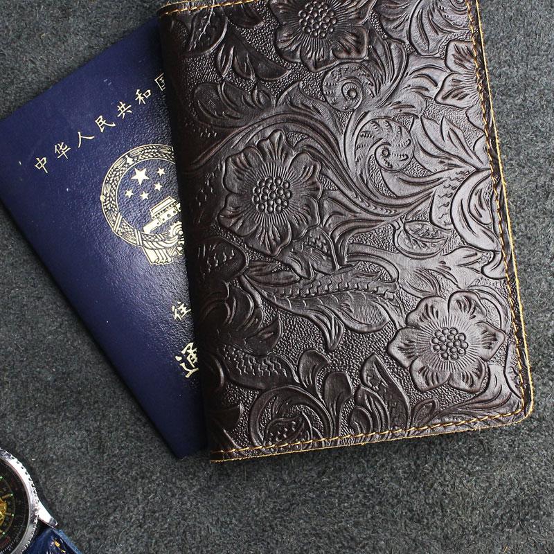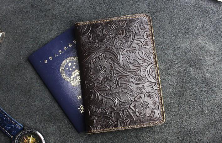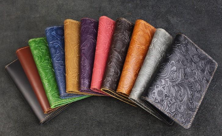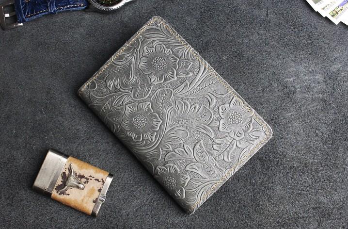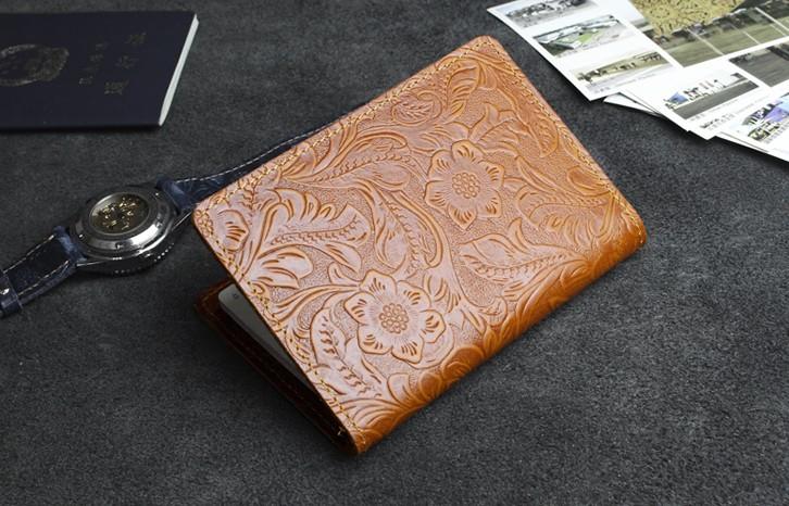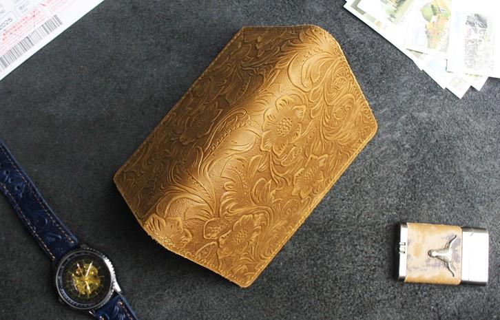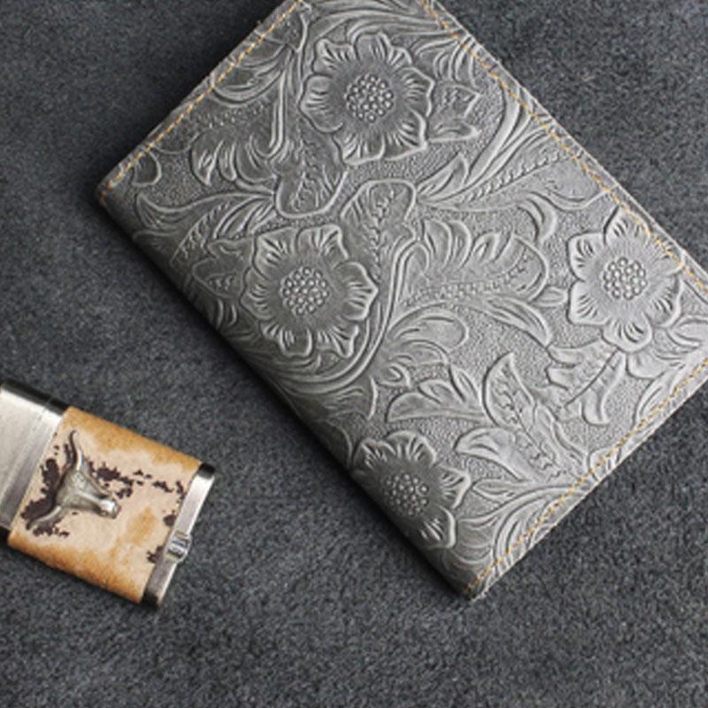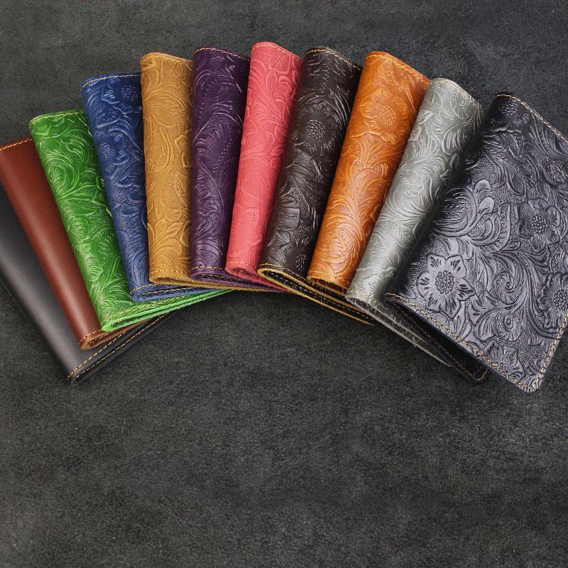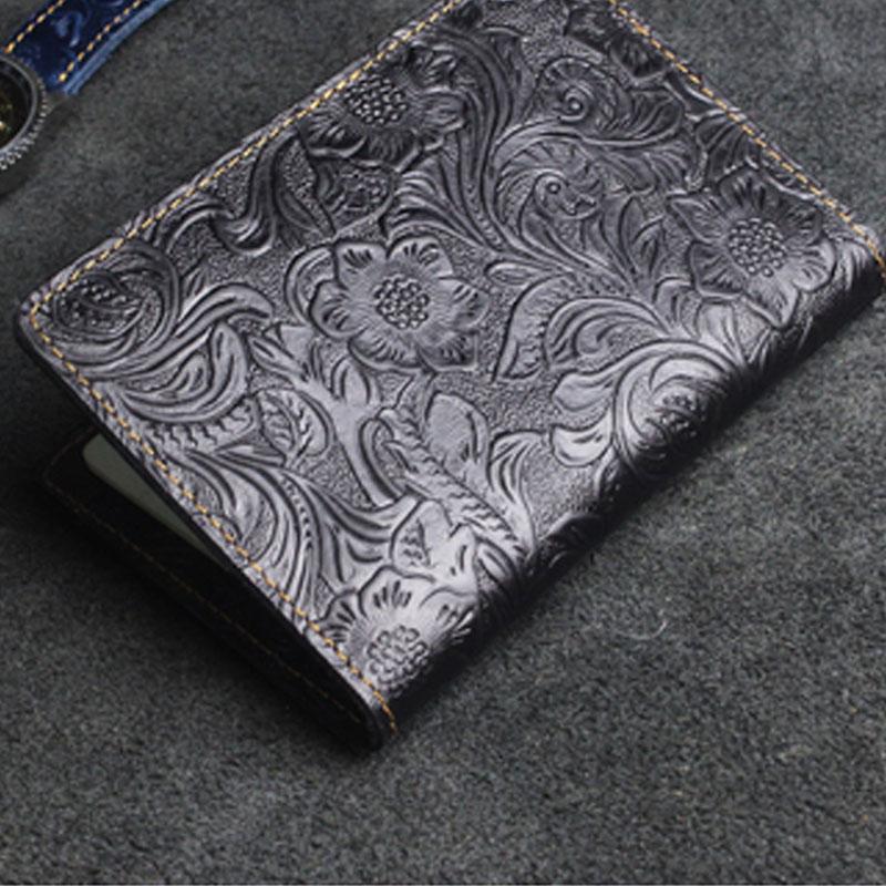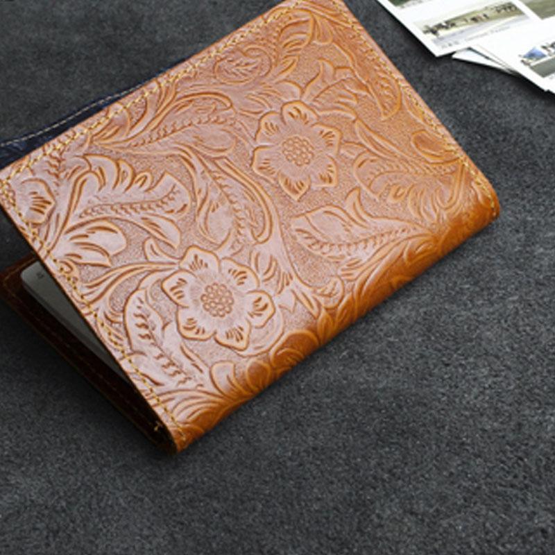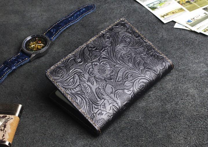 Design: Handmade Leather Floral Mens Cool Short Wallet Passport Card Holder Small Card Slim Wallets for Men