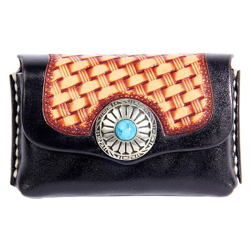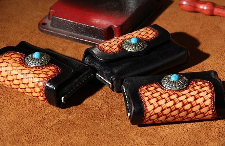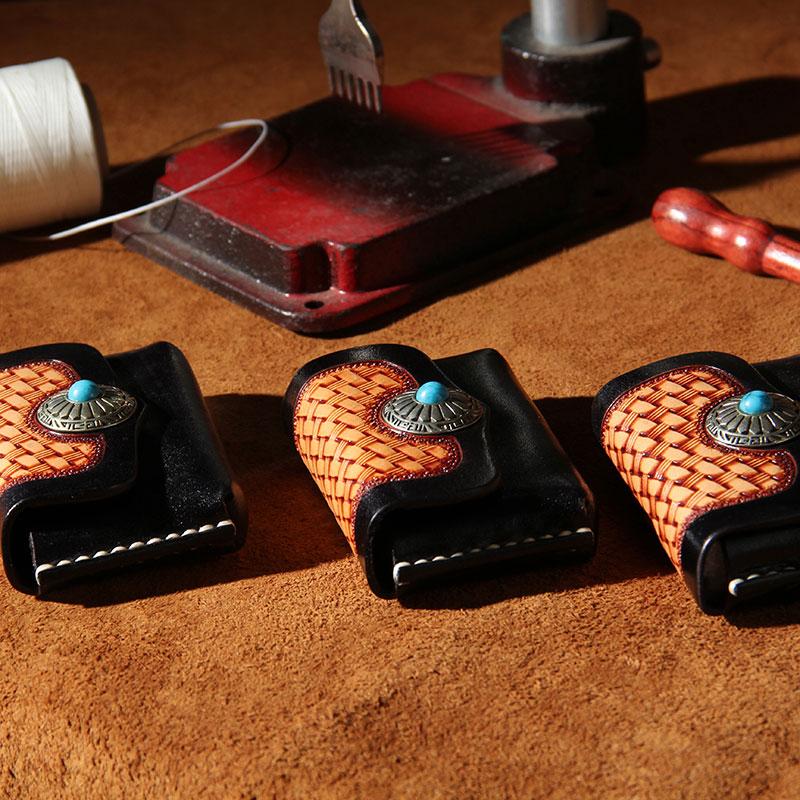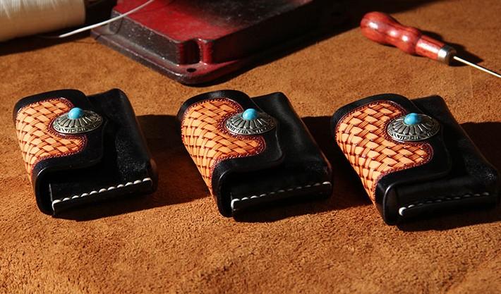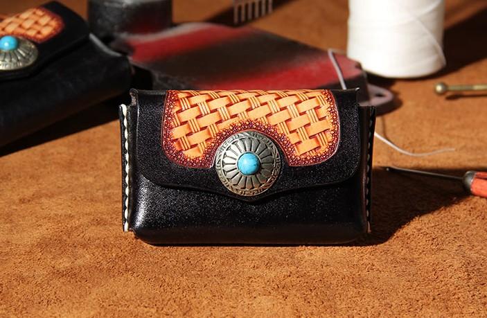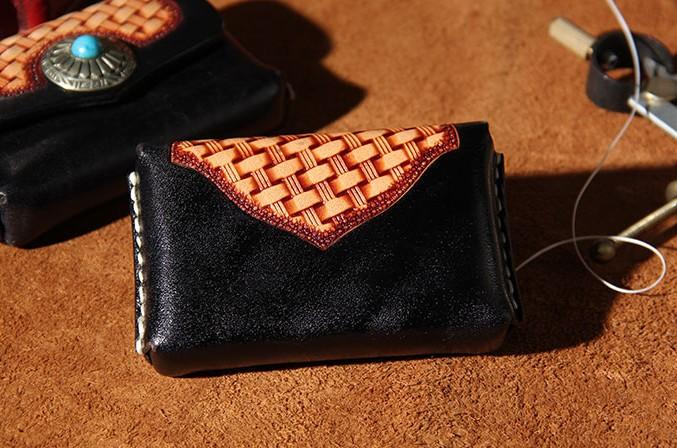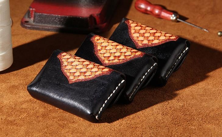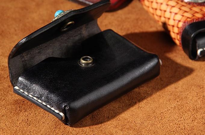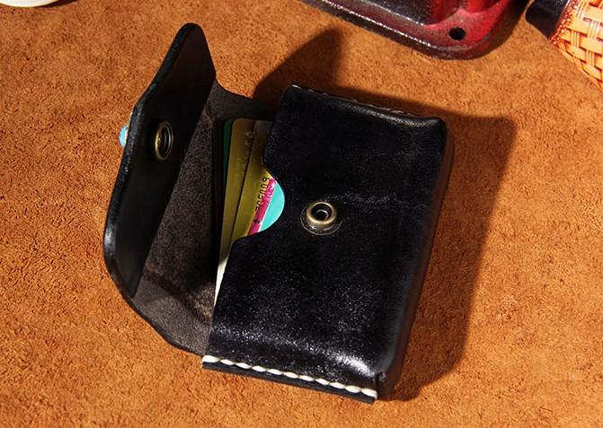 Style: Handmade Leather Mens Card Wallet Black Small Card Wallet for Men