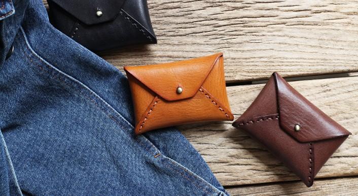 Design: Handmade Leather Mens Change Wallet Card Wallet Front Pocket Wallet Coin Wallet for Men