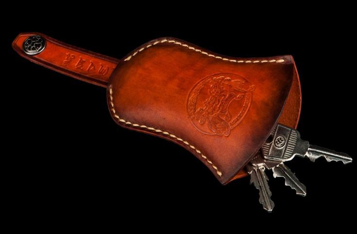 Design: Handmade Leather Tooled Mens Cool Car Key Wallet Coin Wallet Pouch Car KeyChain for Men
