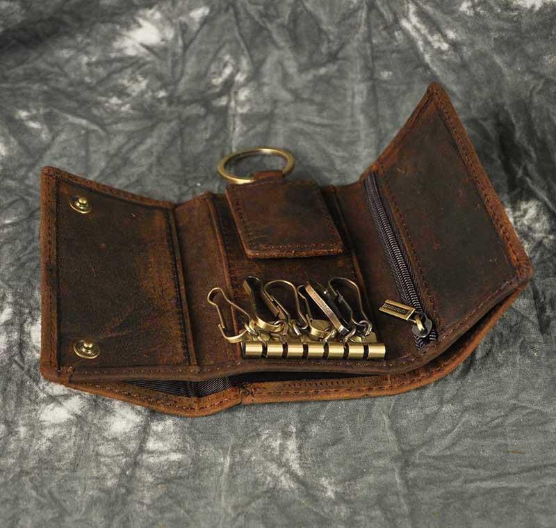 Style: Handmade Leather Mens Cool Key Wallet Change Coin Wallet Key Holder Case Card Wallet for Men