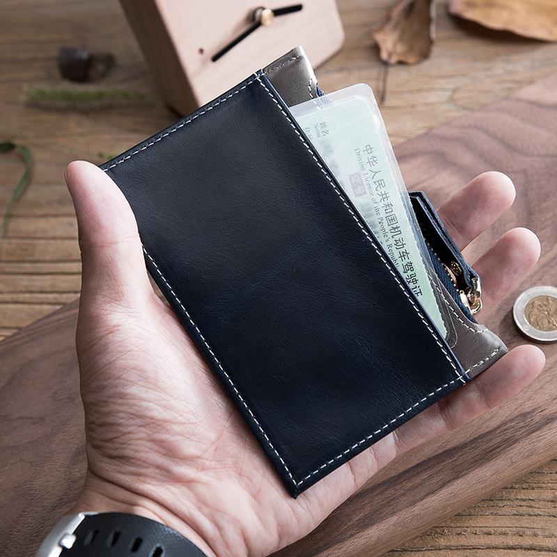 Design: Handmade Leather Mens Cool Short Wallet Card Holder Small Card Slim Wallets for Men