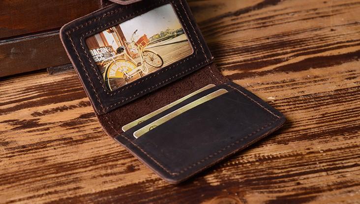 Design: Handmade Leather Mens Cool Wallet Card Slim Wallet Change Coin License Wallet for Men