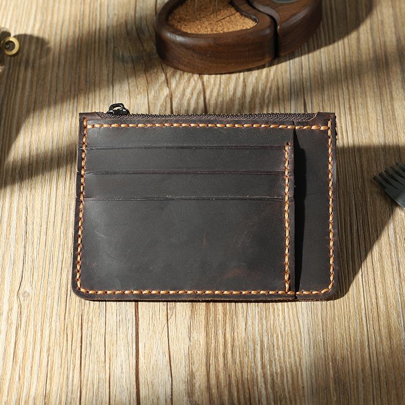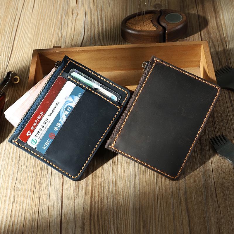 Handmade Leather Mens Front Pocket Wallets Personalized Slim Card Wallet for Men