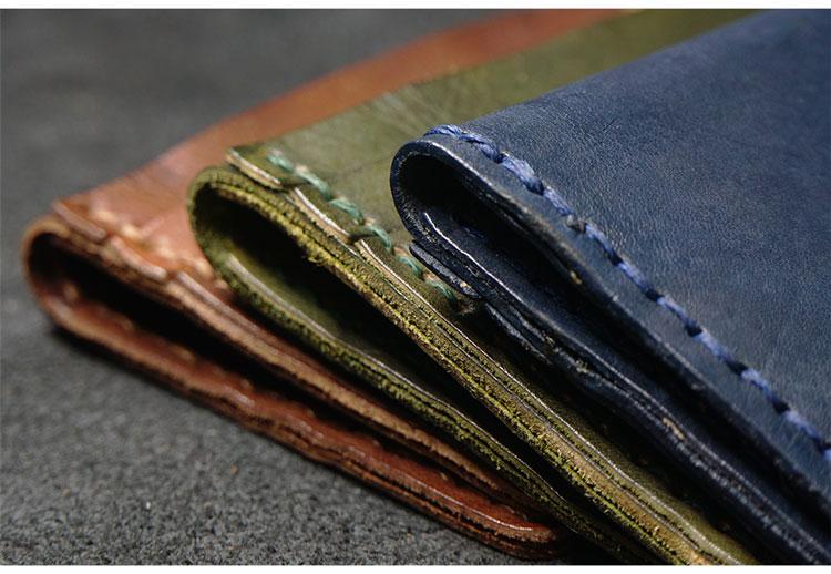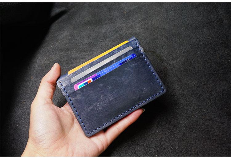 Design: Handmade Blue Leather Mens Slim Card Holders Wallets Slim Bifold Card Wallet for Men