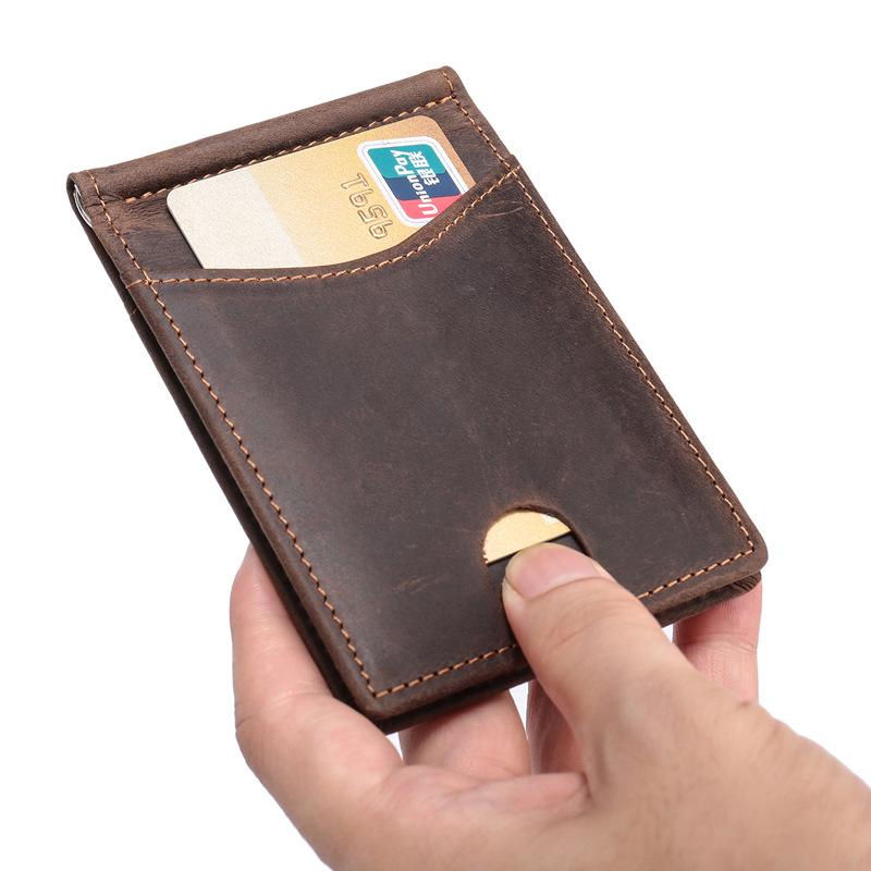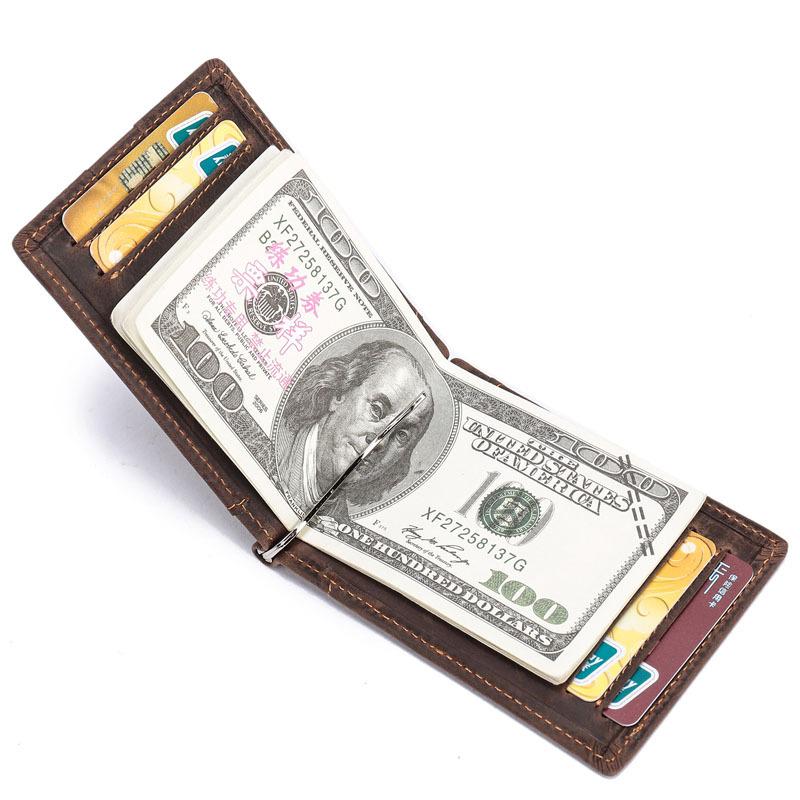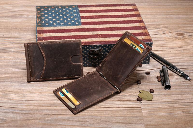 Handmade Leather Money Clip Mens Cool billfold Wallet Card Holder Small Card Slim Wallets for Men