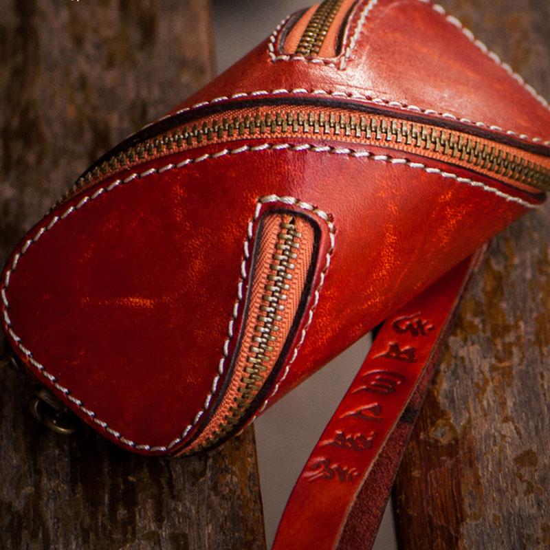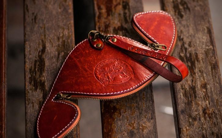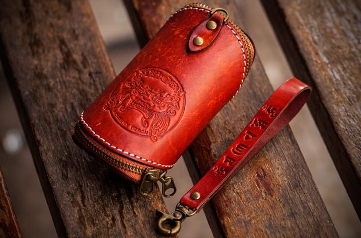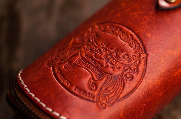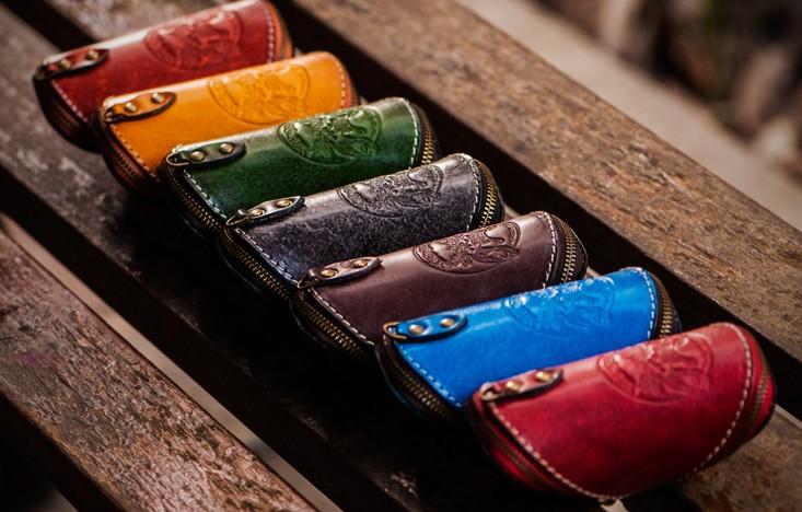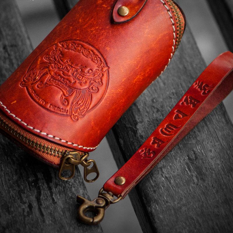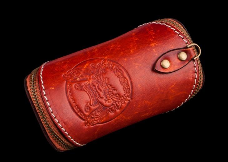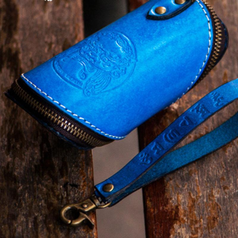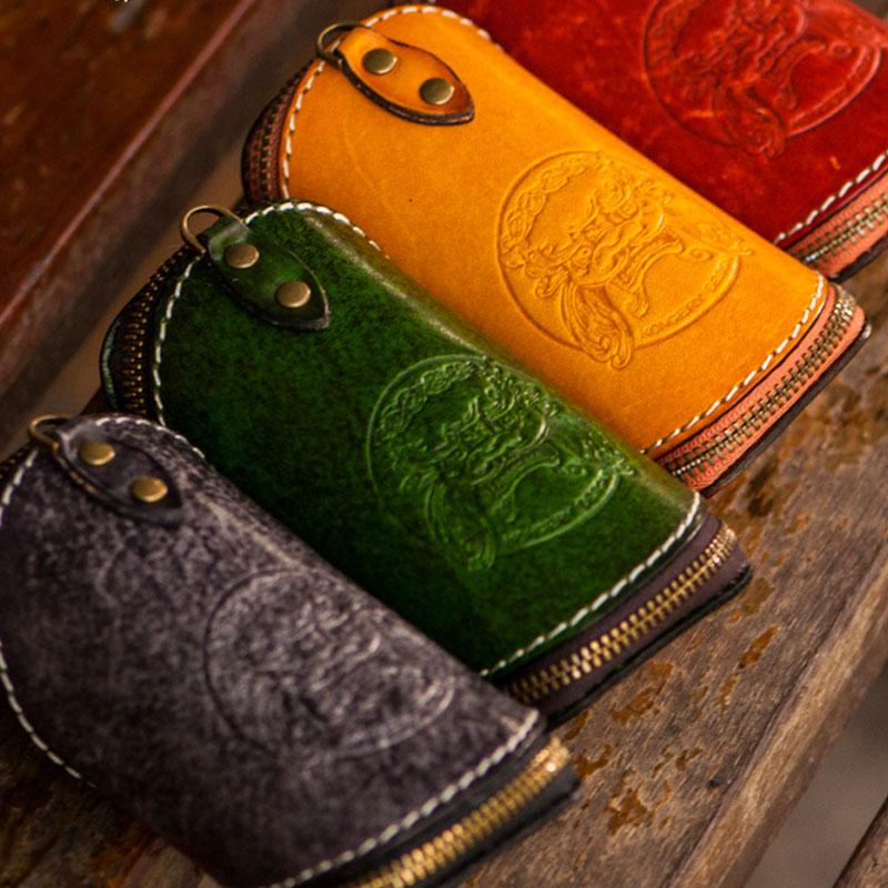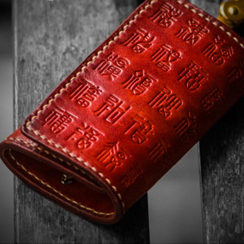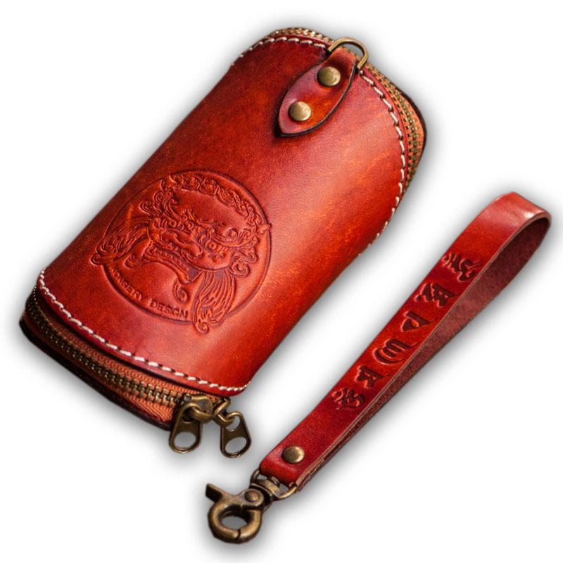 Design: Handmade Leather Tooled Mens Cool Car Key Wallet Coin Wallet Pouch Car KeyChain for Men