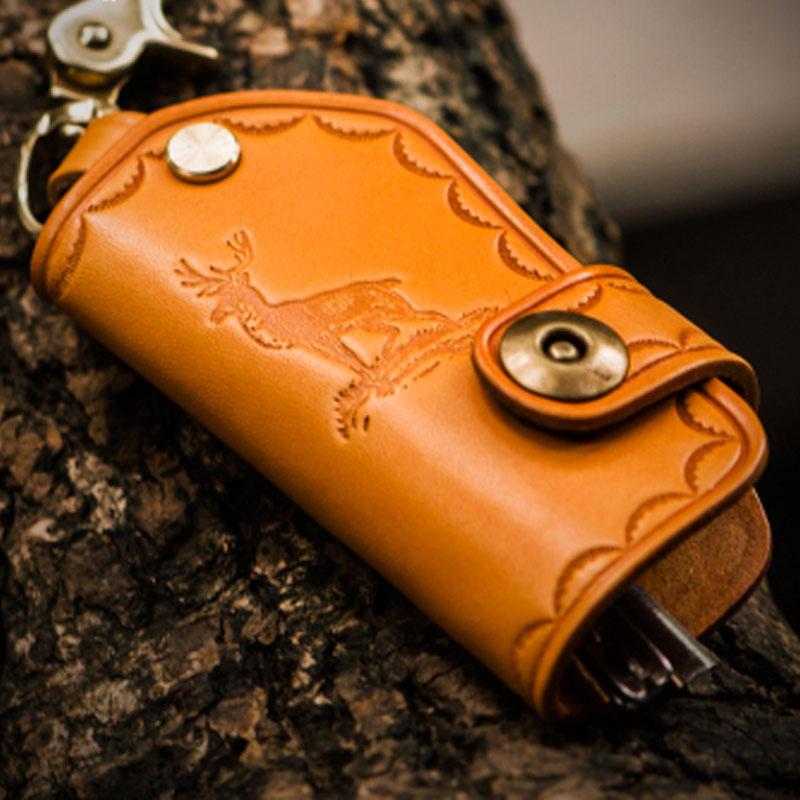 Style: Handmade Leather Tooled Mens Cool Car Key Wallet Coin Wallet Pouch Car KeyChain for Men