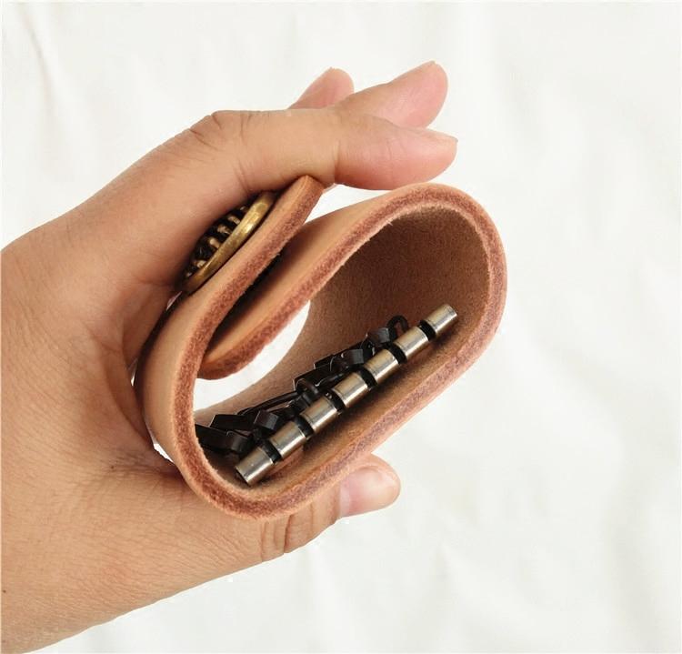 Handmade Mens Beige Leather Biker Key Wallet Cool Small Key Wallets Key Holder
