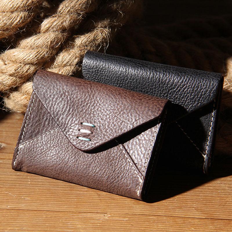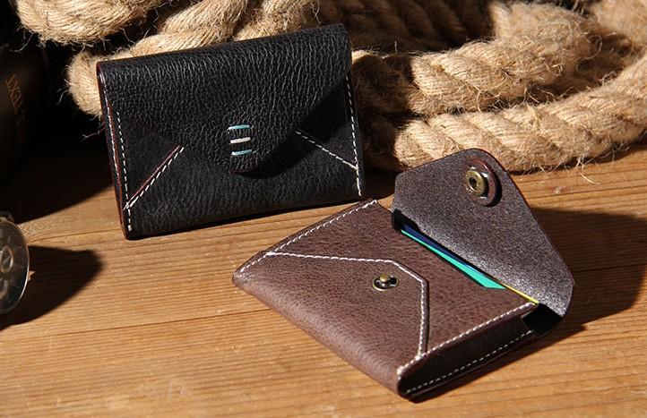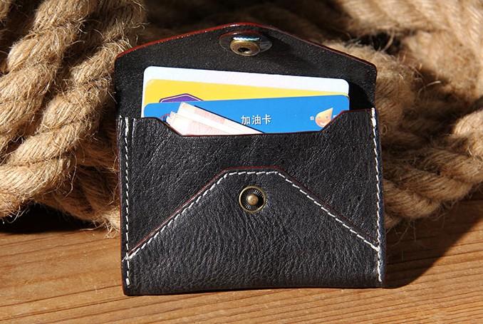 Leather Mens Card Wallet Black Small Card Wallet for Men