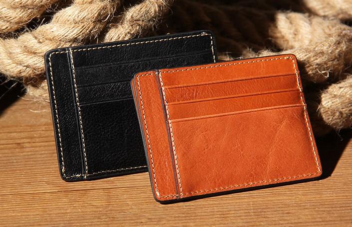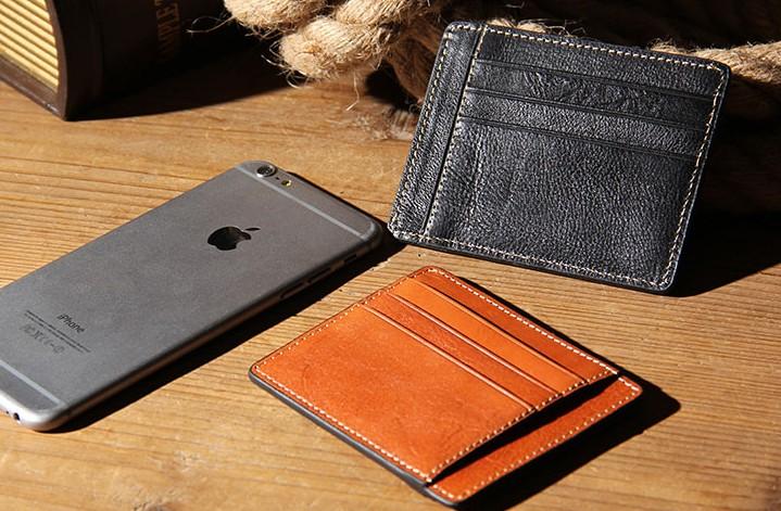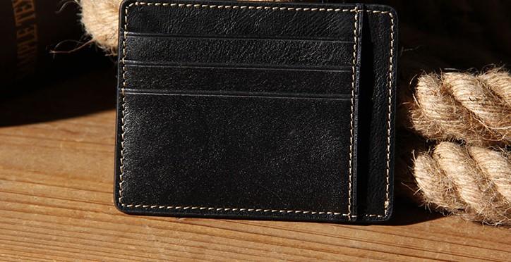 Design: Leather Mens Slim Front Pocket Wallet Card Wallet Black Card Wallet for Men
