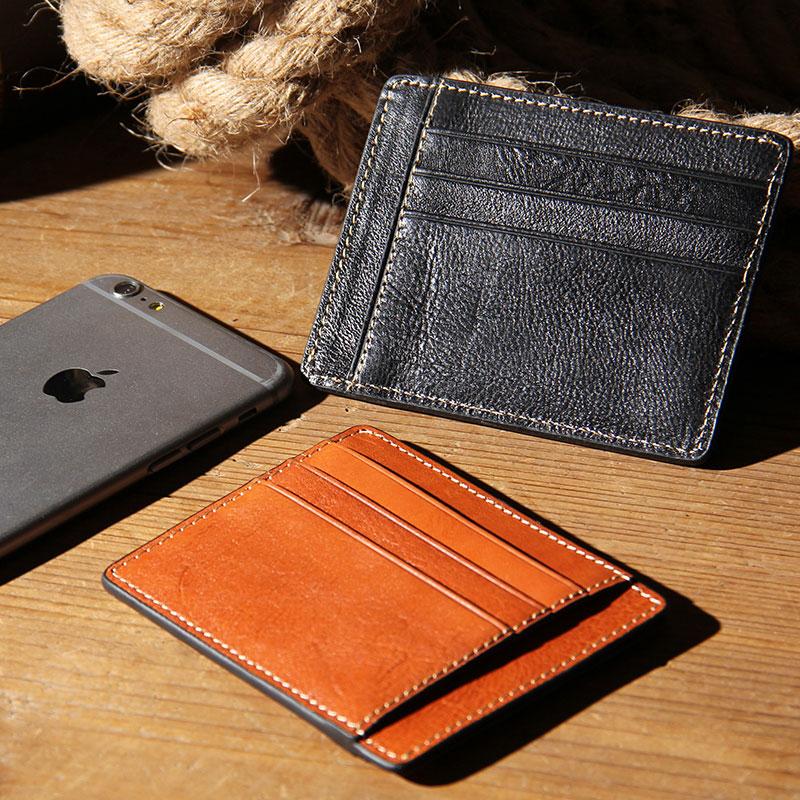 Style: Leather Mens Slim Front Pocket Wallet Card Wallet Black Card Wallet for Men