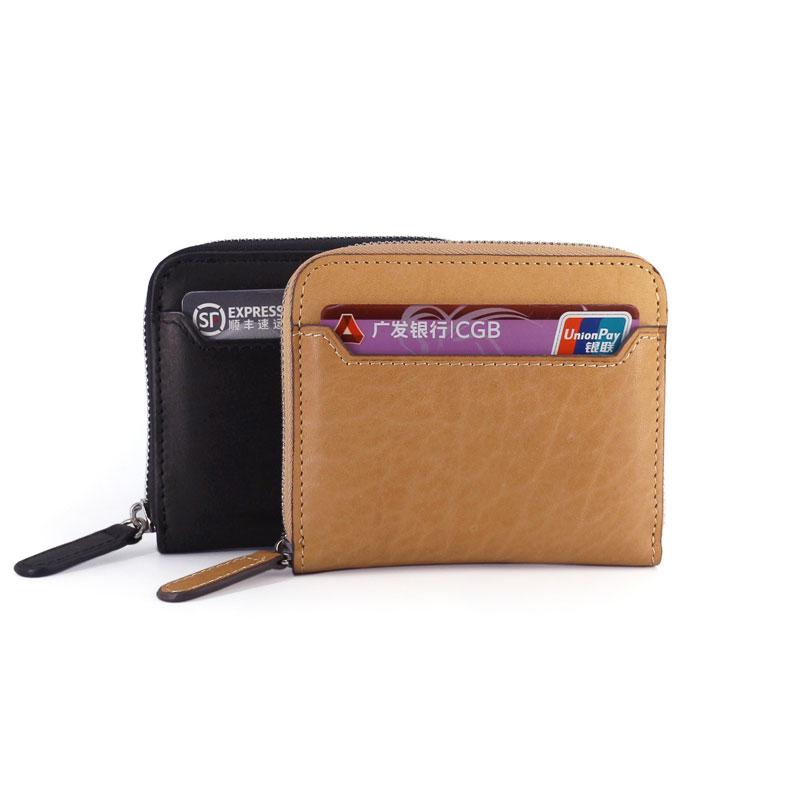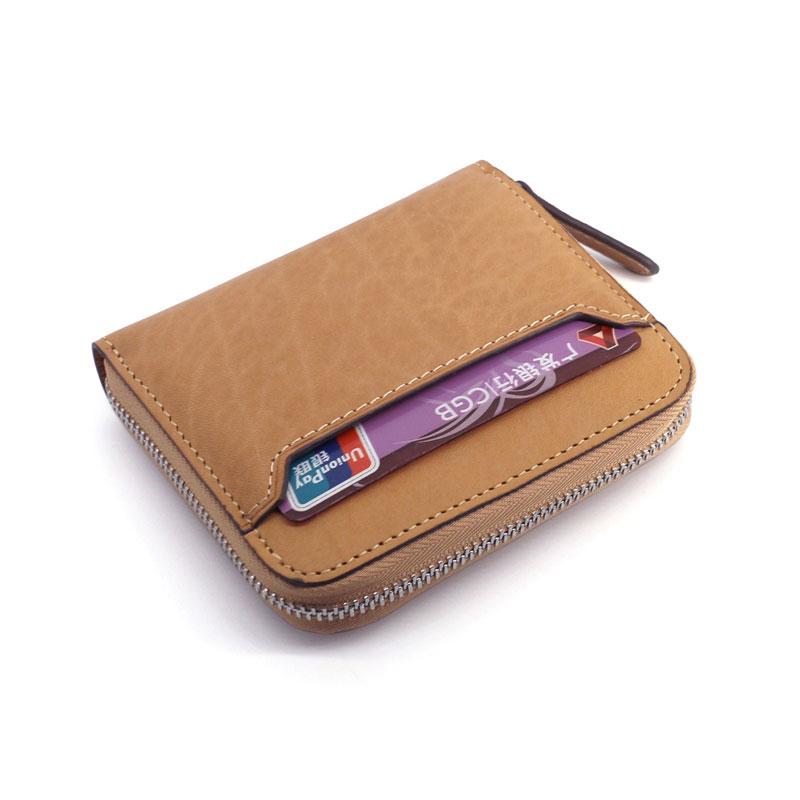 Leather Mens Zipper Front Pocket Wallet Card Wallet Slim Small Change Wallet for Men