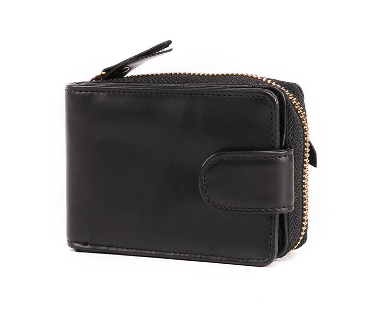 Design: RFID Brown Leather Men's Zipper Small Card Wallet Small Card Holder For Men