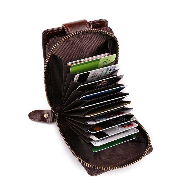 Style: RFID Brown Leather Men's Zipper Small Card Wallet Small Card Holder For Men