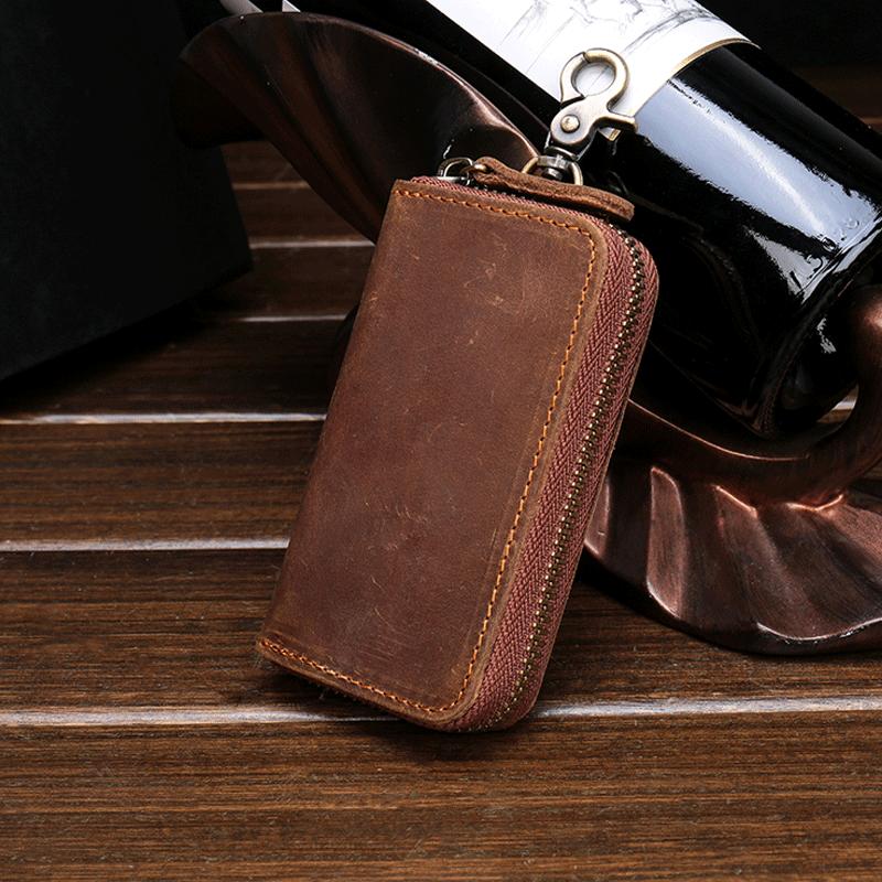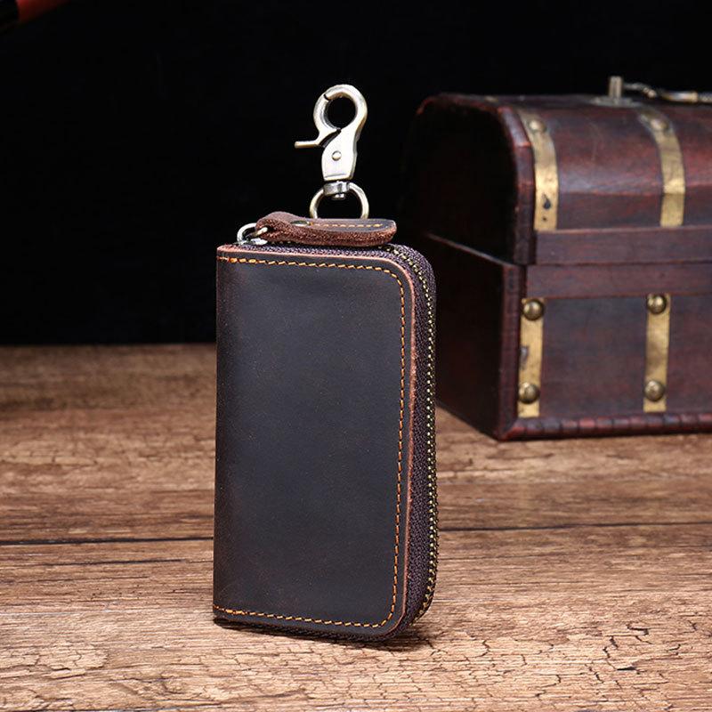 Style: Cool Fashion Leather Men's Car Key Wallet Zipper Key Holder For Men
