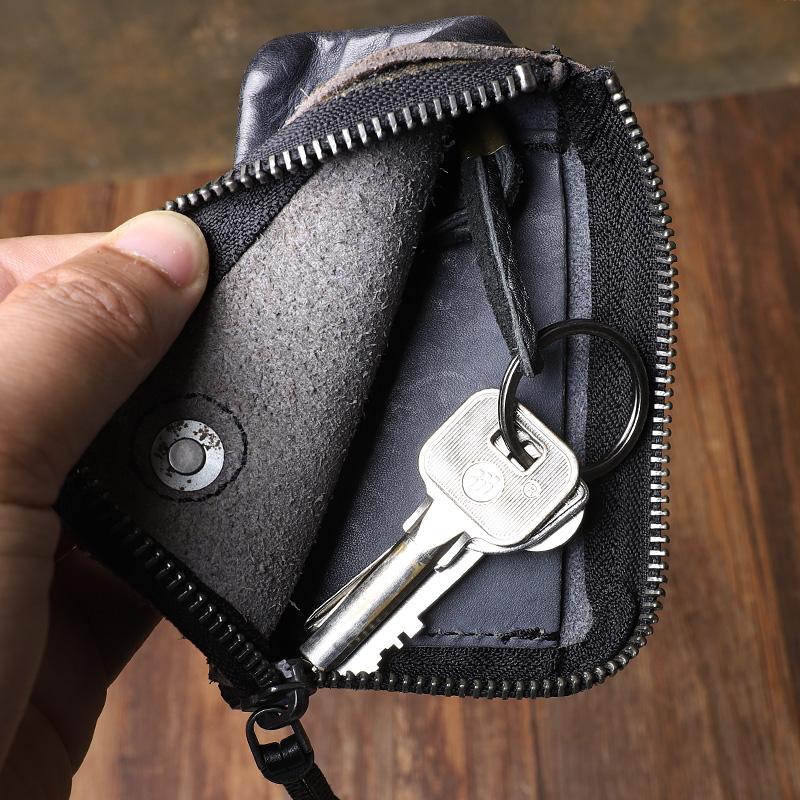 Style:Retro Handmade Mens Leather Key Purse Black Car Key Wallet Card Wallet For Men