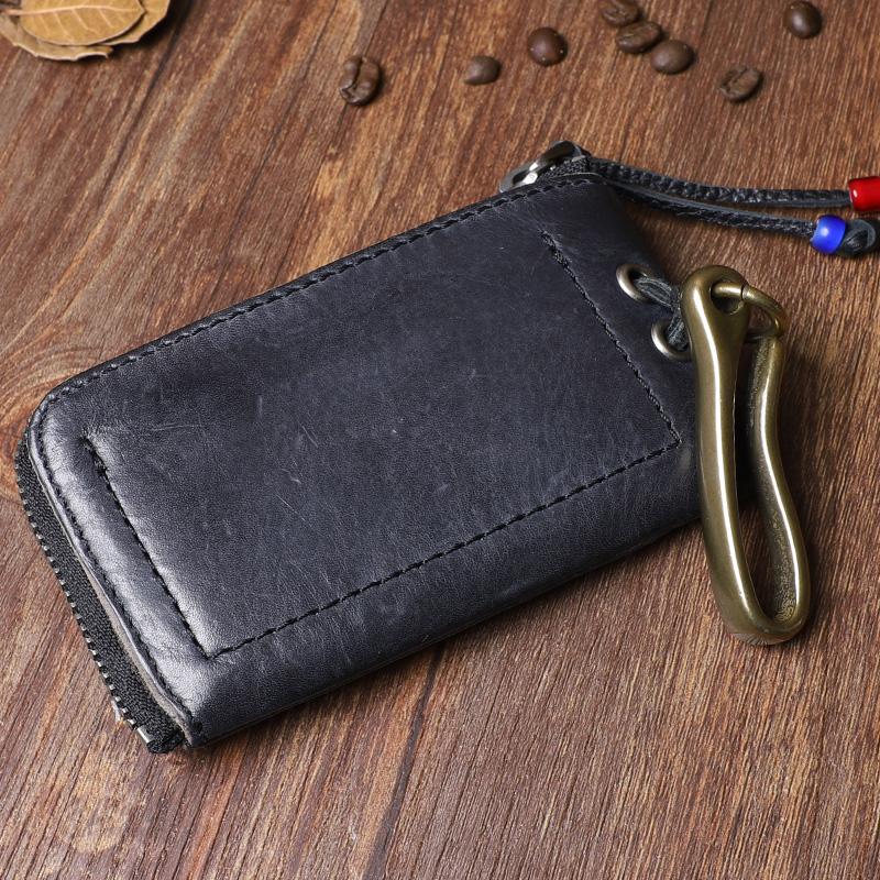 Design: Retro Handmade Mens Leather Key Purse Black Car Key Wallet Card Wallet For Men