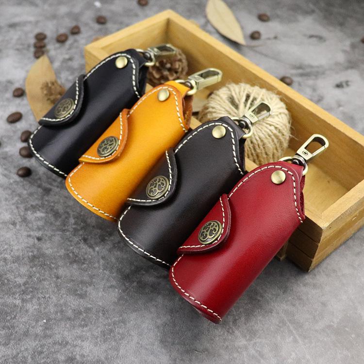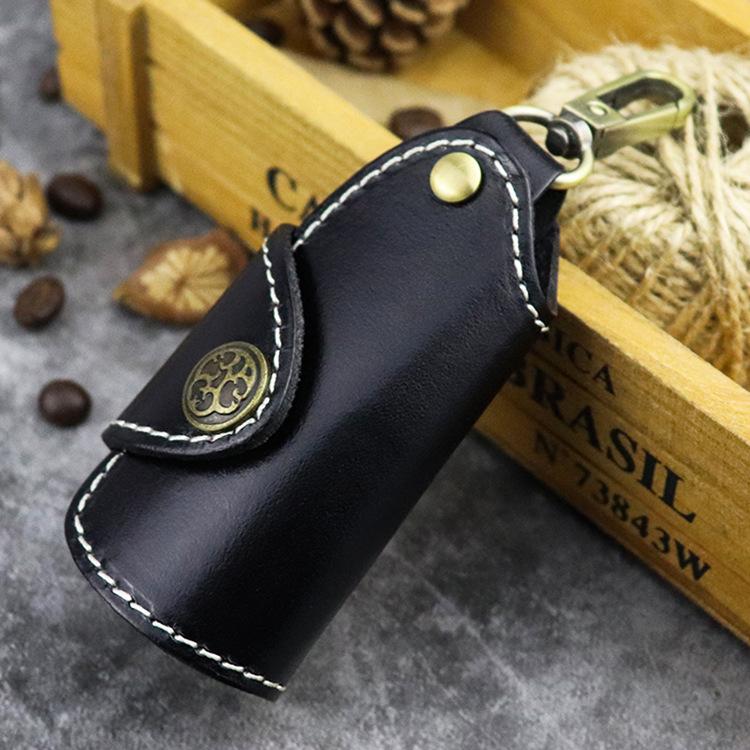 Style: Cool Black Leather Men's Key Wallet Car Key Red Holder Key Holder For Men