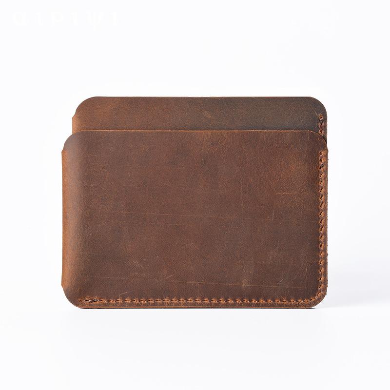 Design: Vintage Brown Leather Men's Front Pocket Wallet Black Slim Card billfold Wallet Small Wallet For Men