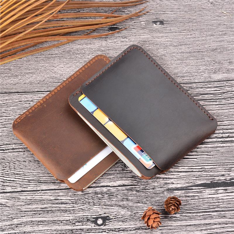 Style: Vintage Brown Leather Men's Front Pocket Wallet Black Slim Card billfold Wallet Small Wallet For Men