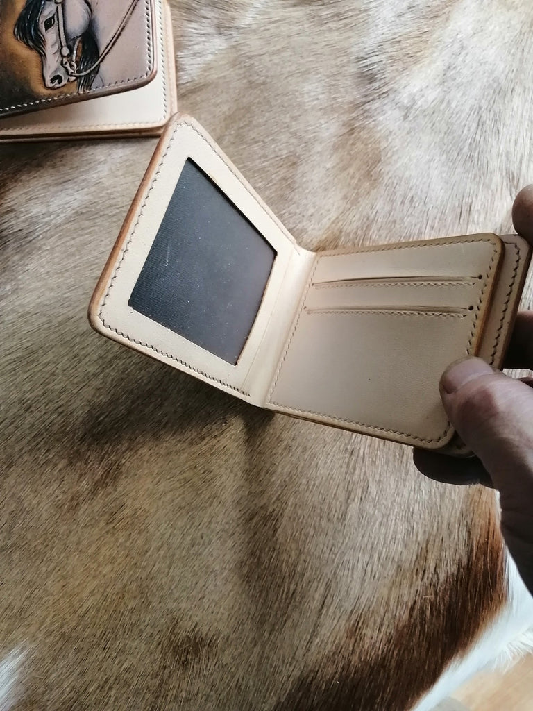 Design: Tooled Leather Wallet Horse Card Wallet with ID Window Steed ID Holder Wallet Mens Wallet with ID Window