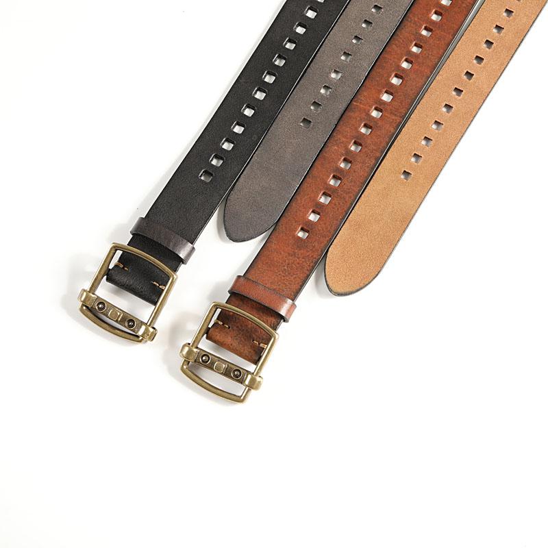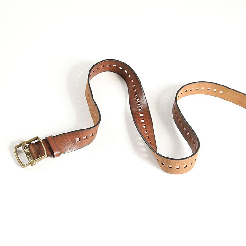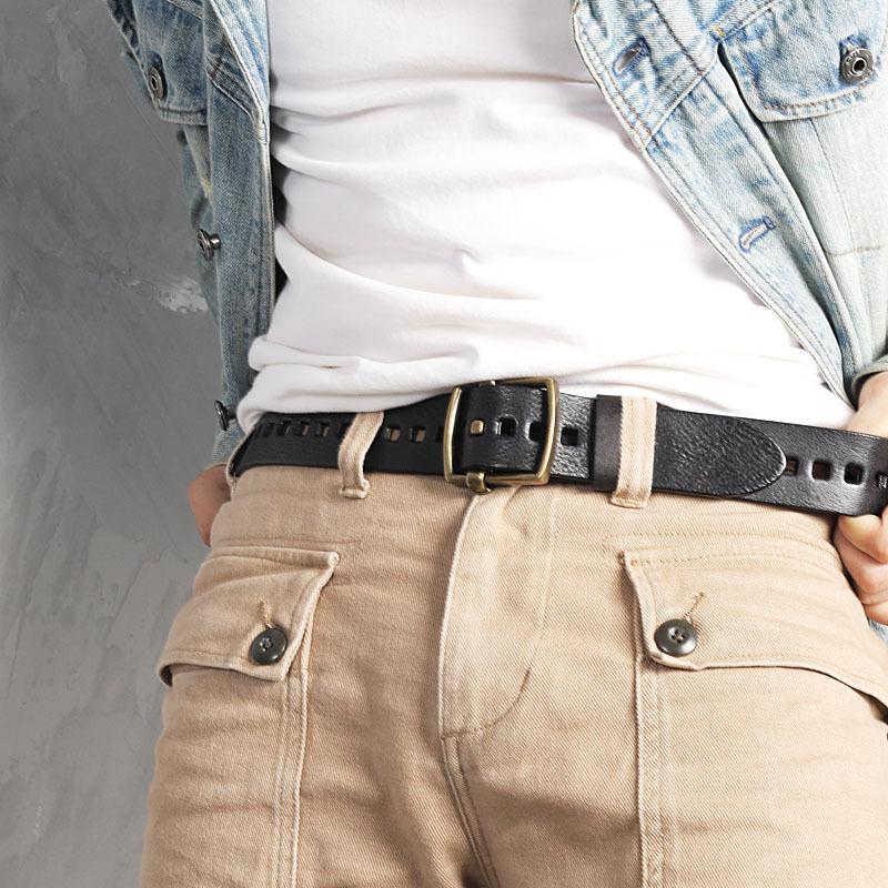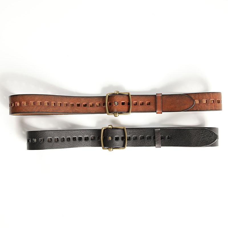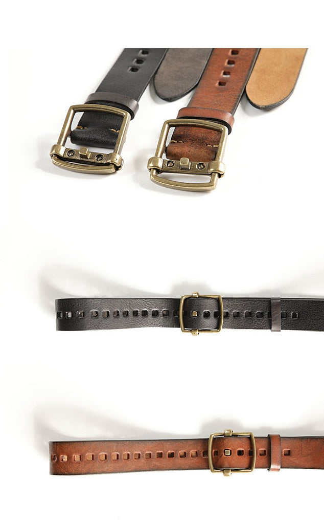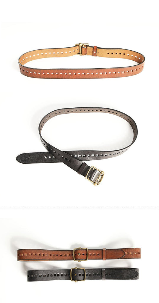 Genuine Leather Black Hollow Fashion Belt Khaki Belt Brown Long Belt Slim Belt for Men
