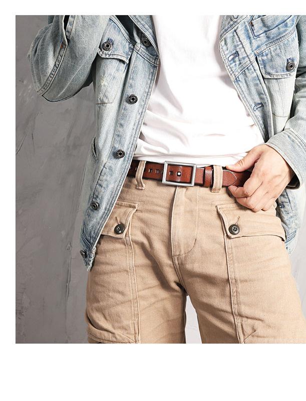 Style: Genuine Leather Black Fashion Belt Khaki Belt Long Belts Slim Belt for Men
