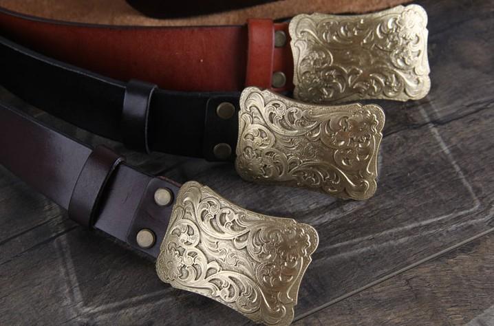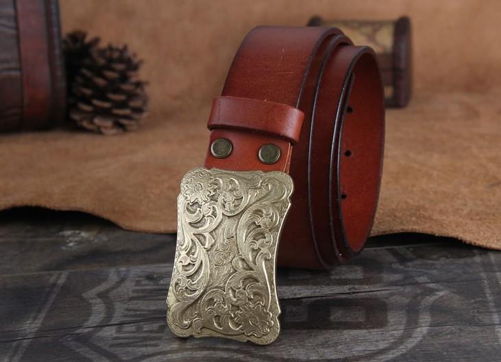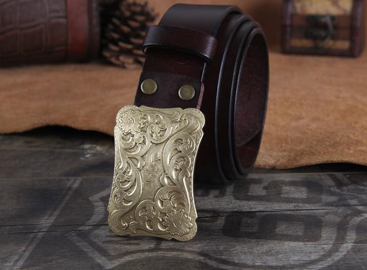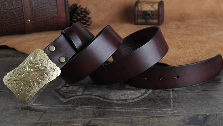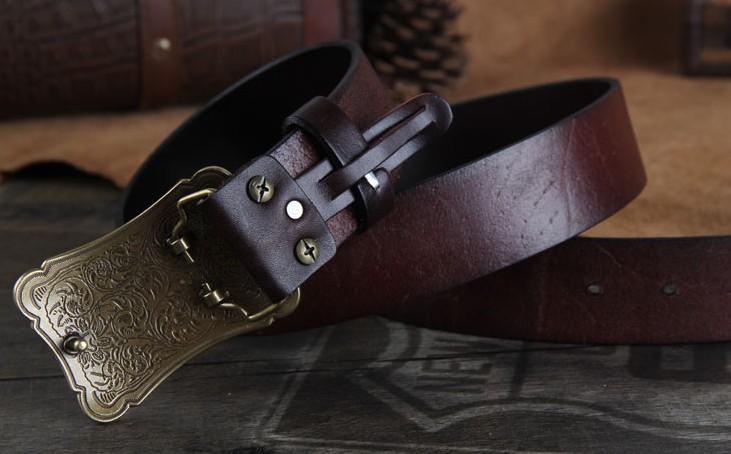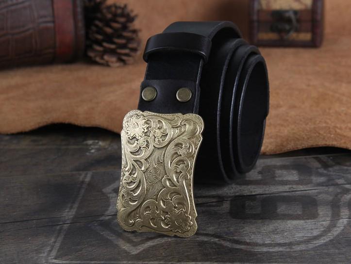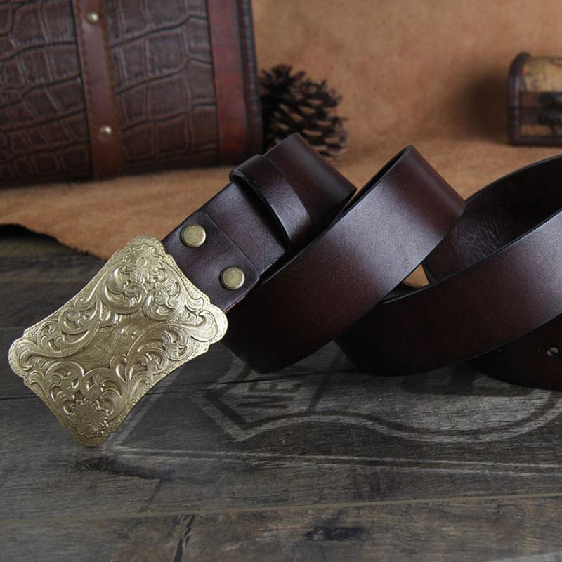 Design: Genuine Leather Punk Rock Biker Trucker Mens Floral Belt Men Black Coffee Belt for Men