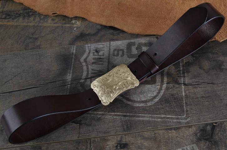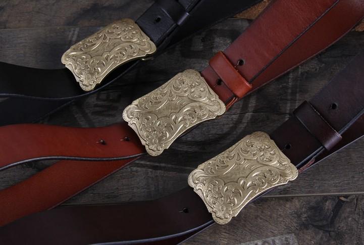 IMPORTANT NOTE: Order your custom leather belt 2" LARGER than your pant size (i.e., 36" pant size = 38" belt). Or, better yet, measure around your waist or hips, wherever you will wear the belt, and ADD 2" to that measurement. If you will be wearing a designer/western style buckle with this belt do NOT add the 2", as the designer/western style buckle adds 2" to the length of the belt.