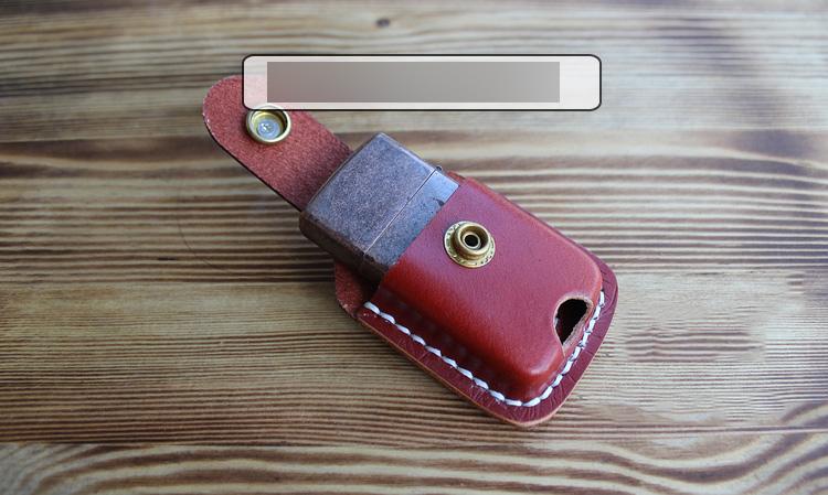 Handmade Mens Brown Leather Classic Zippo Lighter Case Zippo Lighter Holder with Belt Loop
