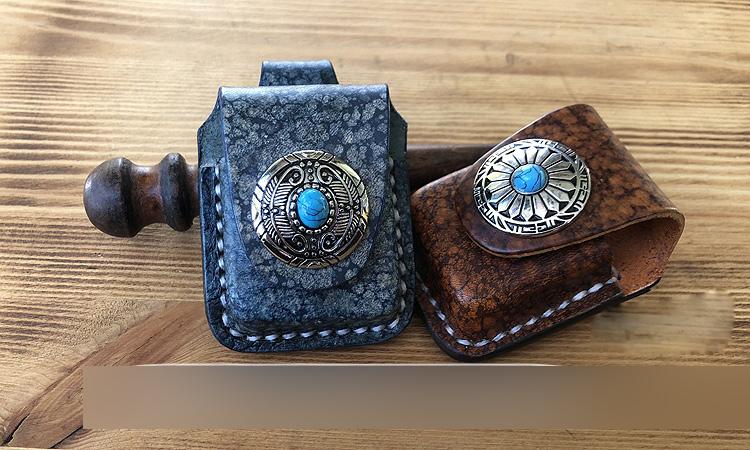Style: Handmade Mens Blue Leather Classic Zippo Lighter Case Belt Zippo Lighter Holder with Belt Loop