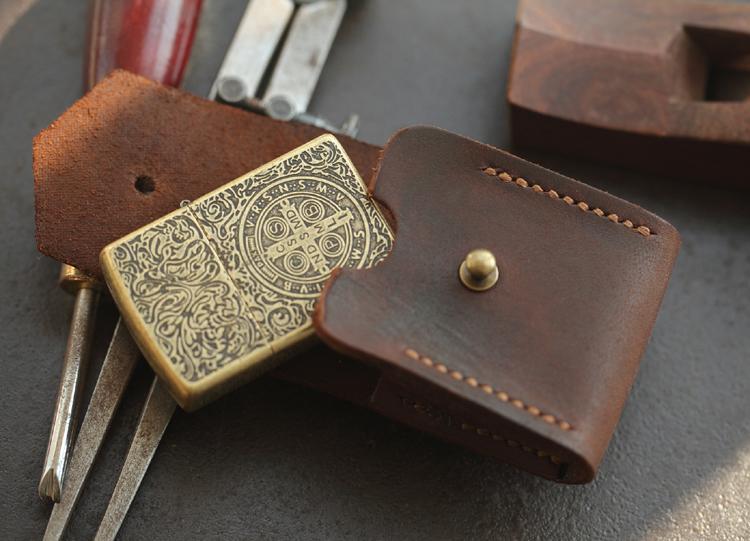 Design: Brown Genuine Handmade Leather Mens Lighter Case With Belt Loop Cool Standard Lighter Holders For Men