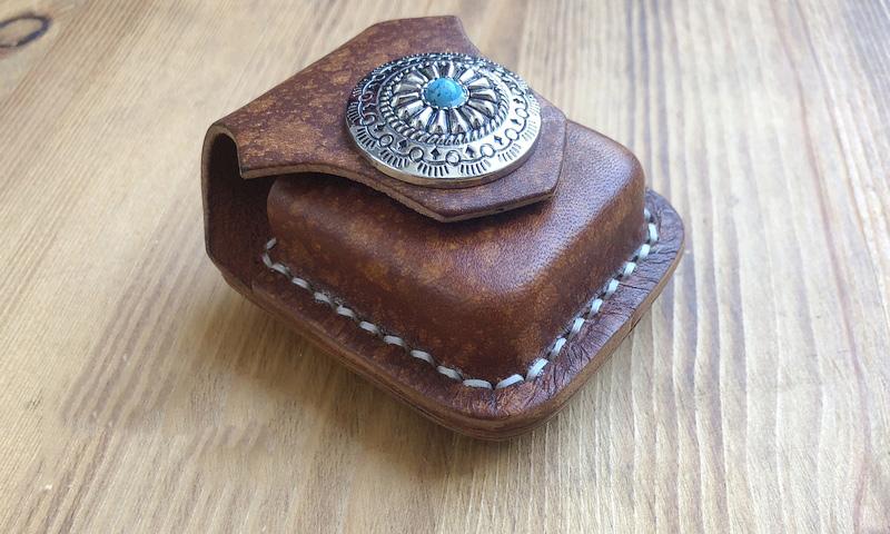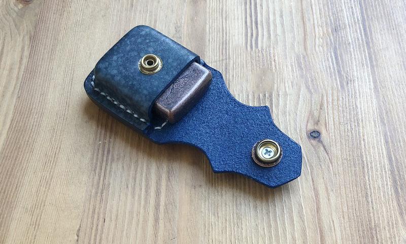 Handmade Mens Blue Leather Classic Zippo Lighter Cases Tan Zippo Lighter Holder with Belt Clip