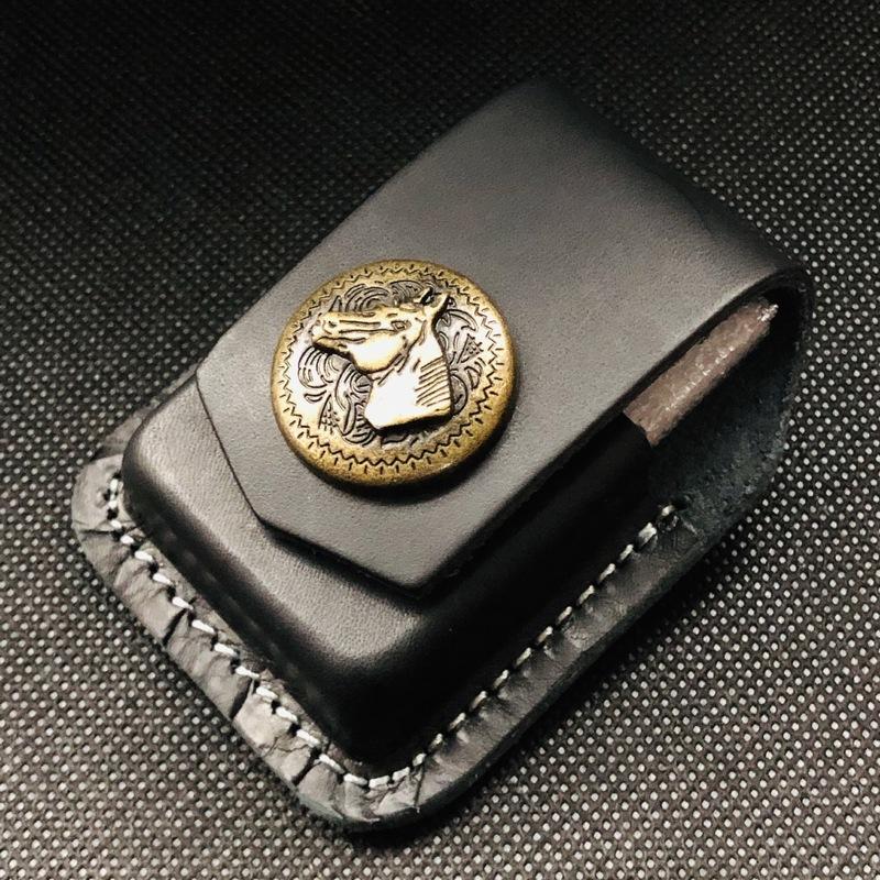 Design: Brown Handmade Leather Mens Black Zippo Lighter Holders Lighter Case For Men