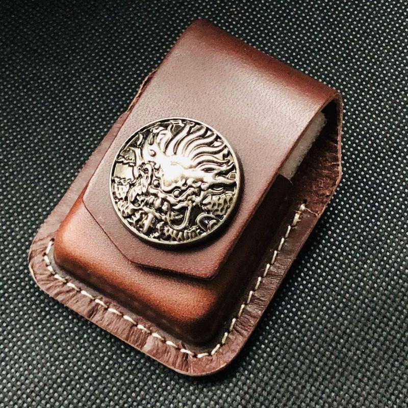 Design: Brown Handmade Leather Mens Black Zippo Lighter Holders Lighter Case For Men