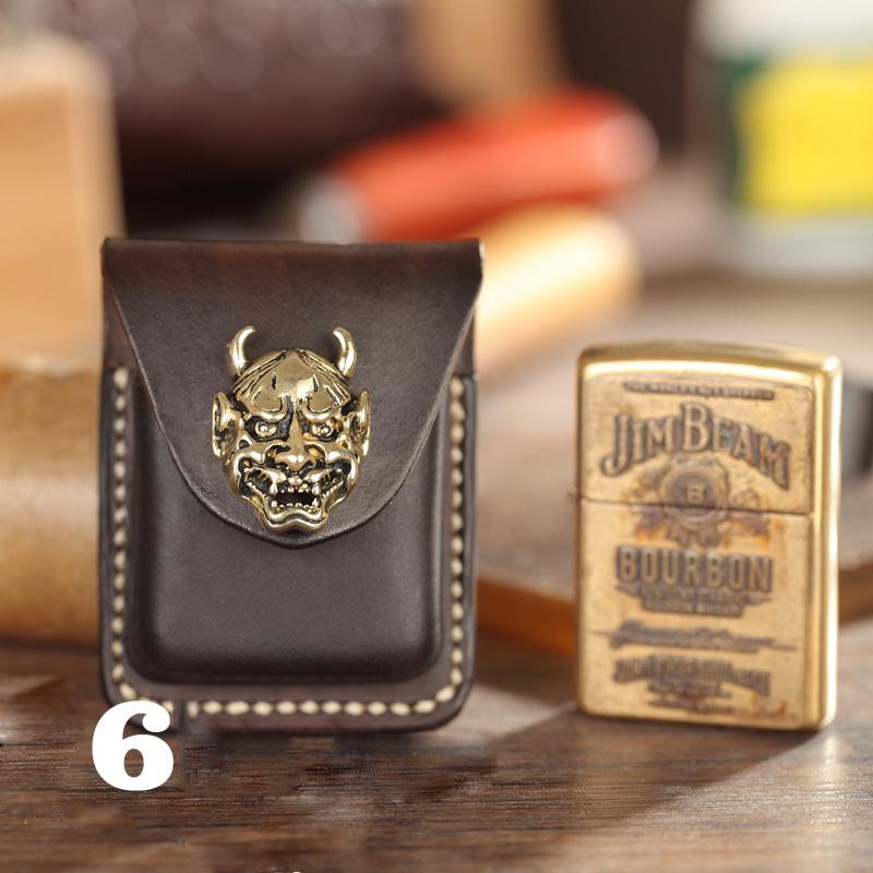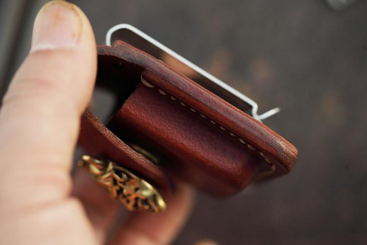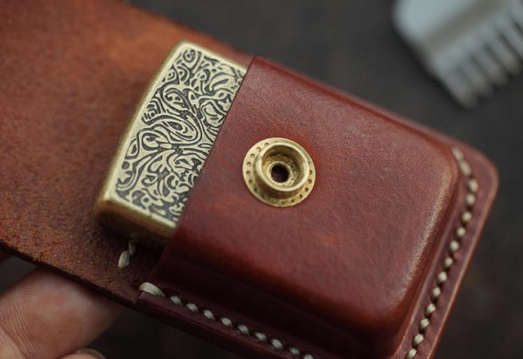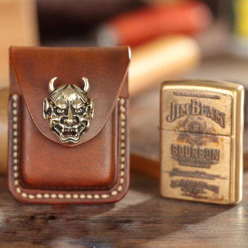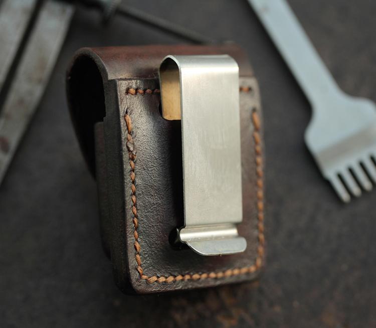Style: Brown Handmade Leather Mens Zippo Lighter Case With Belt Loop Zippo Standard Lighter Holders Steel Clip For Men